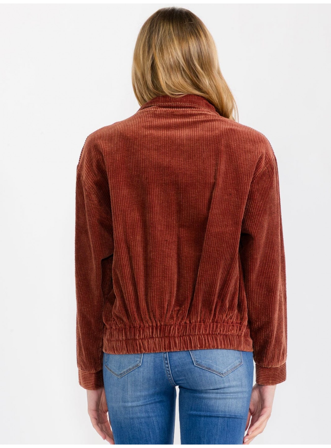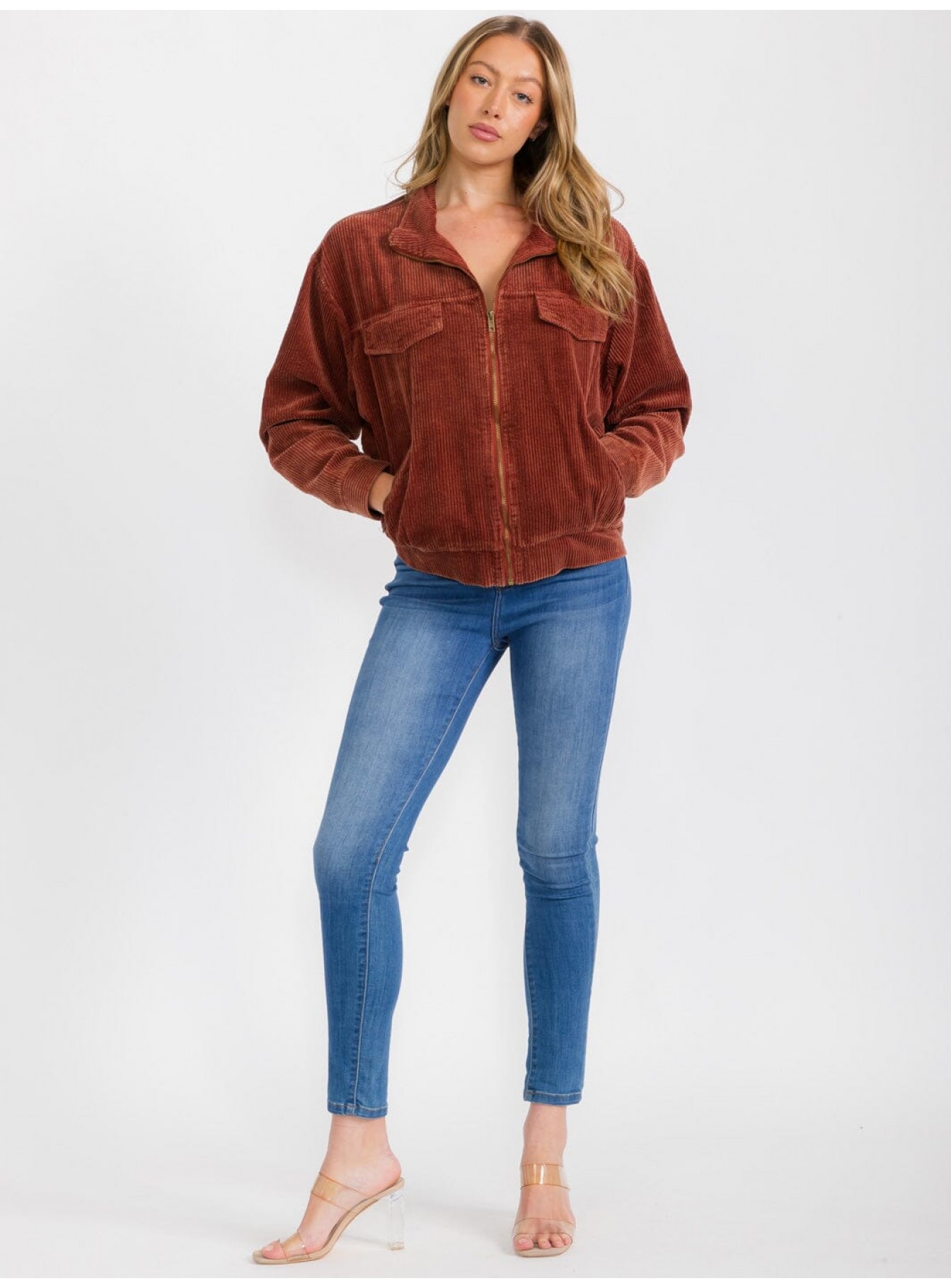 WOMEN'S LONG SLEEVE BUTTON CLOSURE FRONT POCKET CORDUROY JACKET