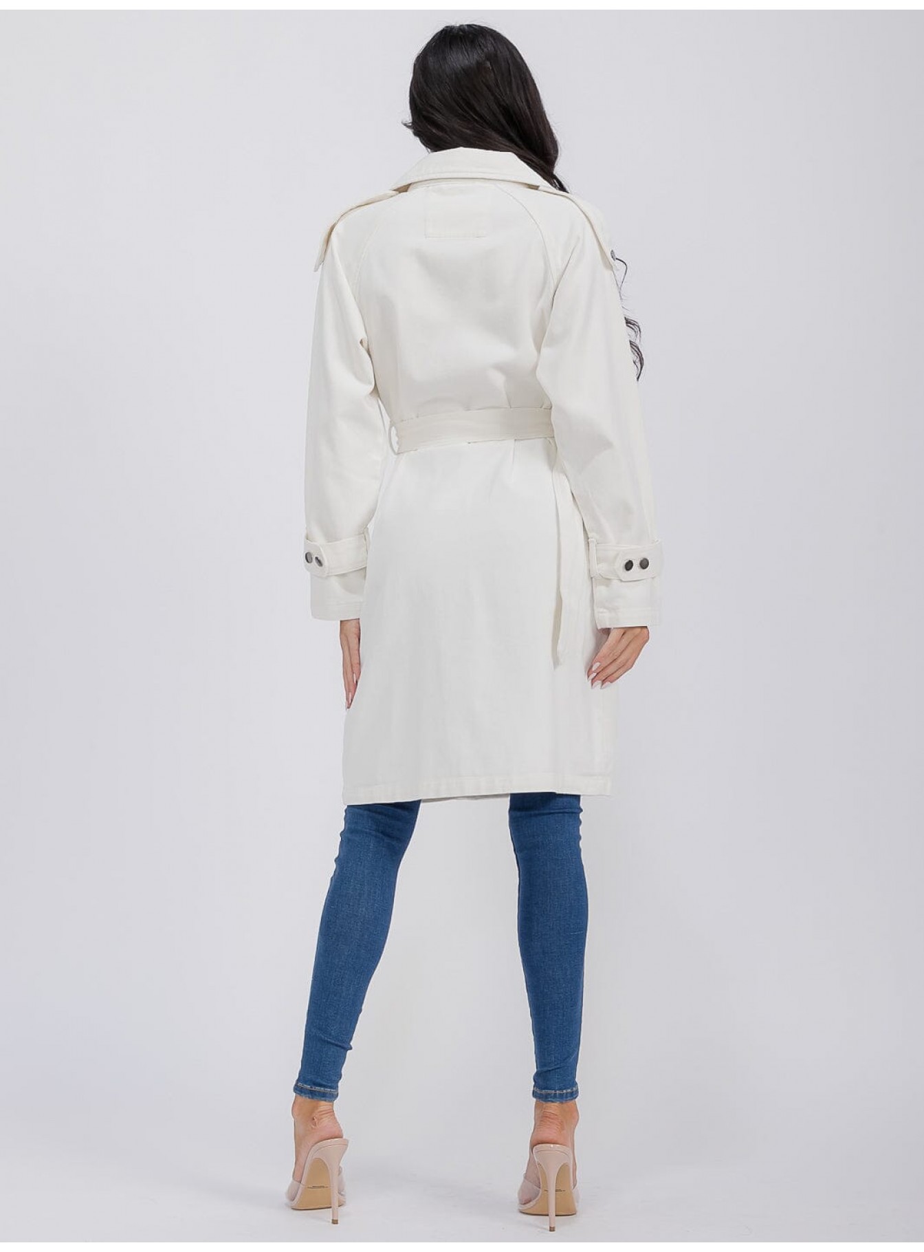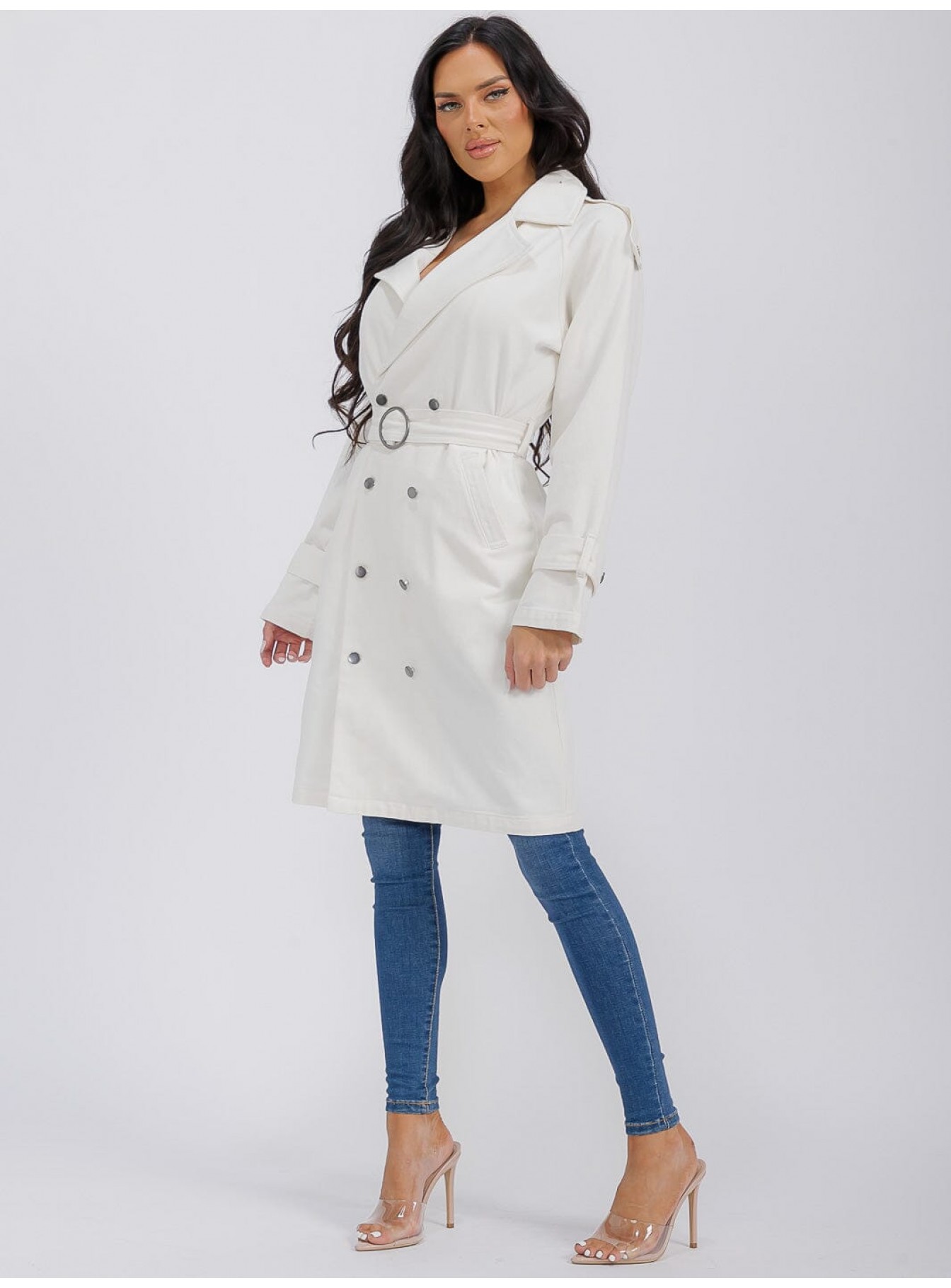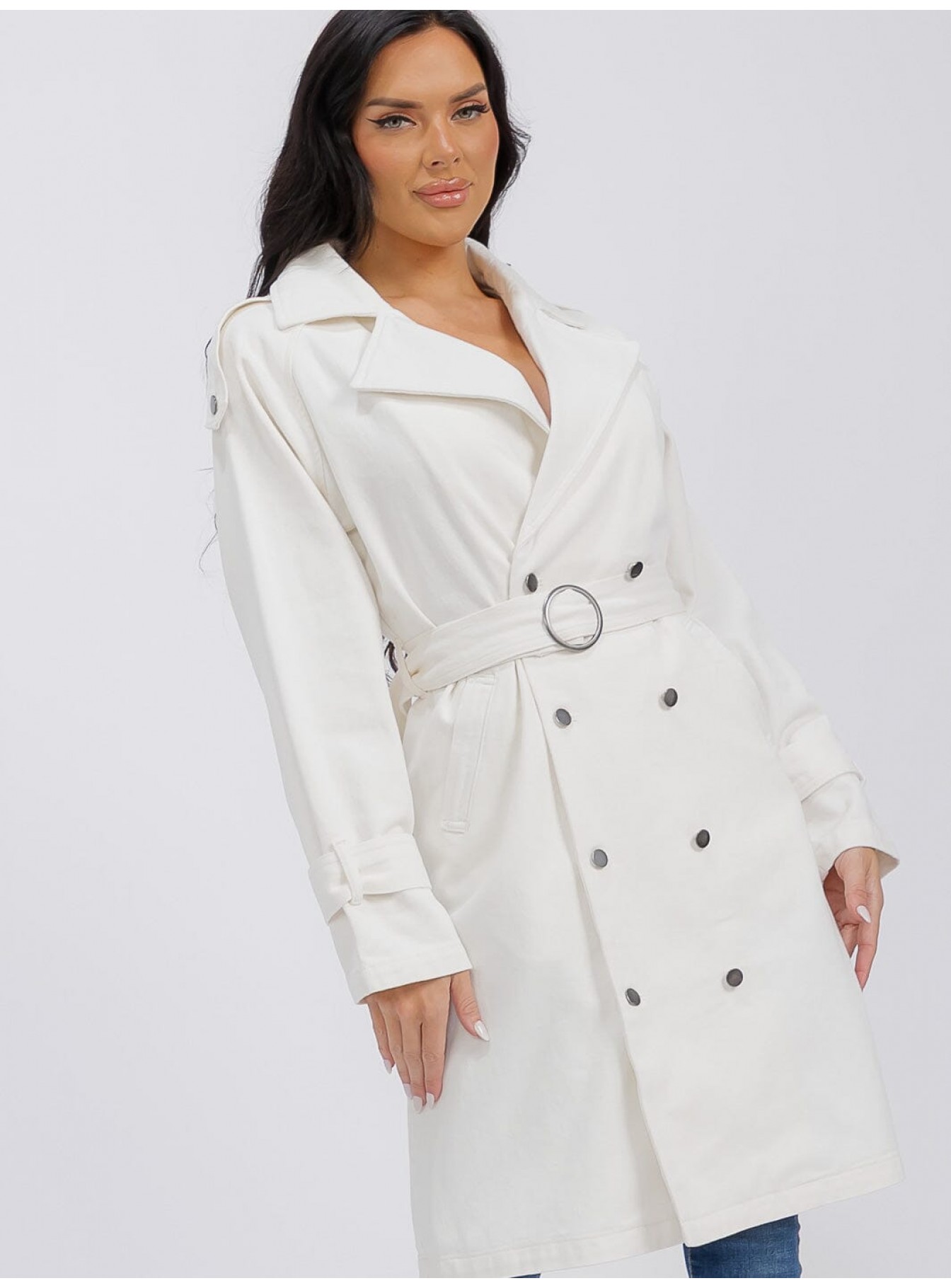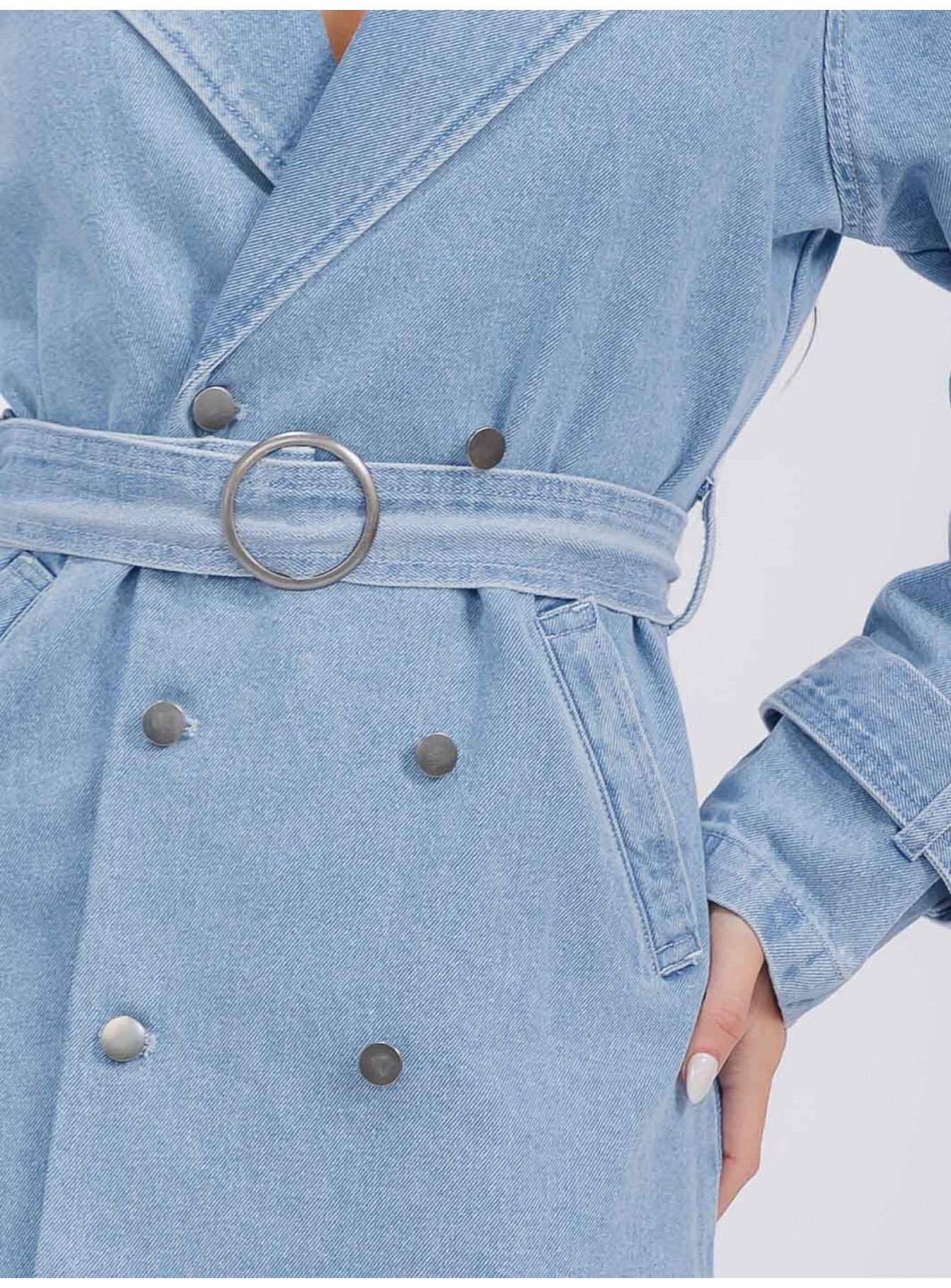 The women's belted denim coat with long sleeves is a versatile addition to any boutique's collection. Crafted from 100% cotton, this denim coat features a button closure and front pockets, making it a practical choice for cooler seasons. It's perfect for layering over casual outfits or styling up for a trendy, urban look, making it a must-have for retailers seeking trend-forward outerwear.