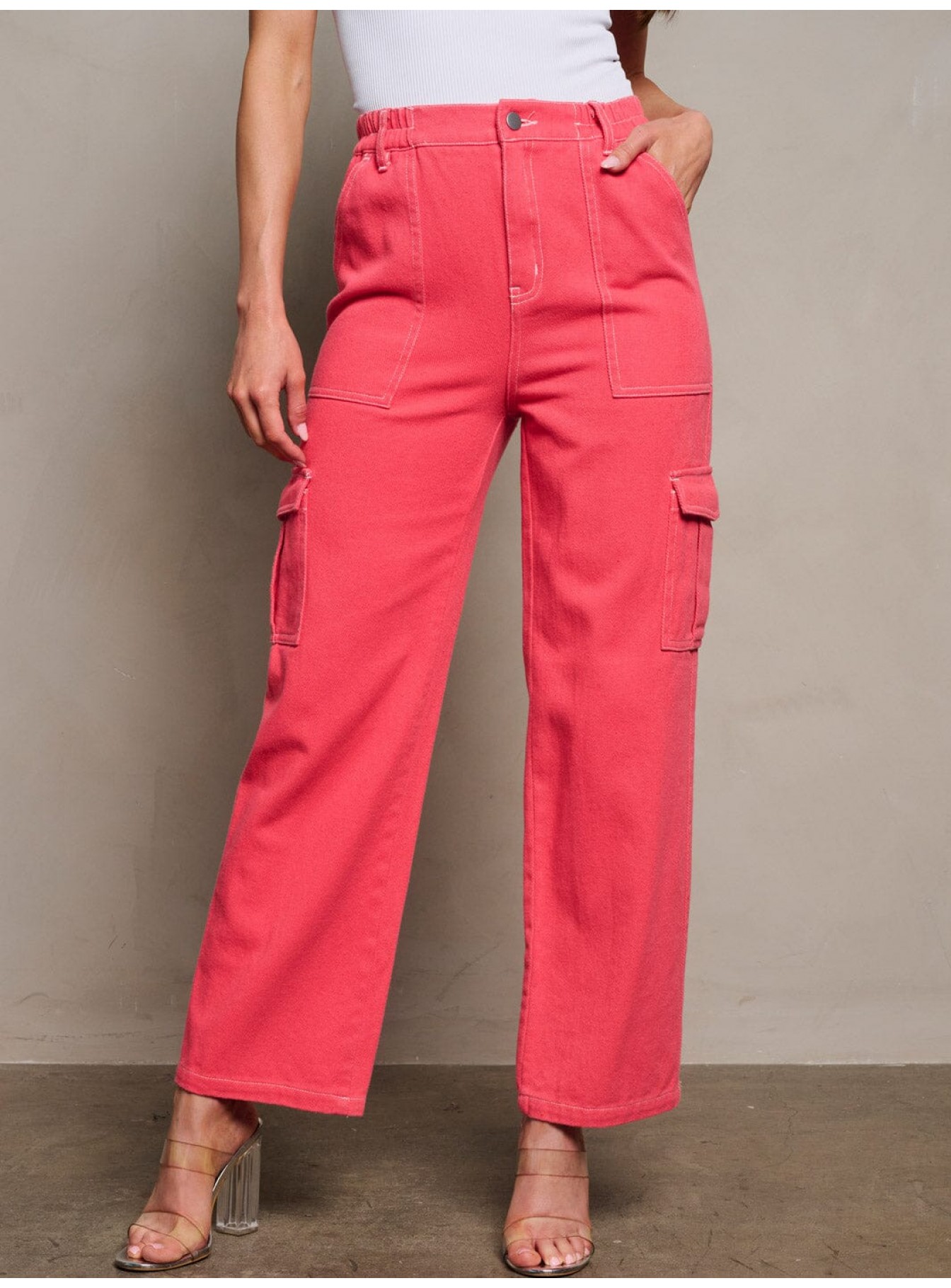 - Product Code: WOMEN'S BUTTON CLOSURE CARGO POCKETS DENIM WIDE LEG PANTS