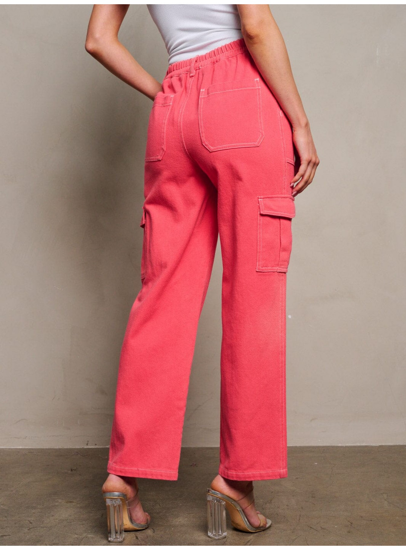 Features:100% cotton fabric, wide leg silhouette, cargo pockets, button closure, versatile styling options, seasonless design, boutique appeal.