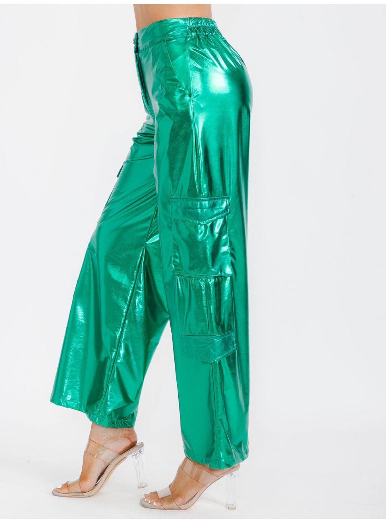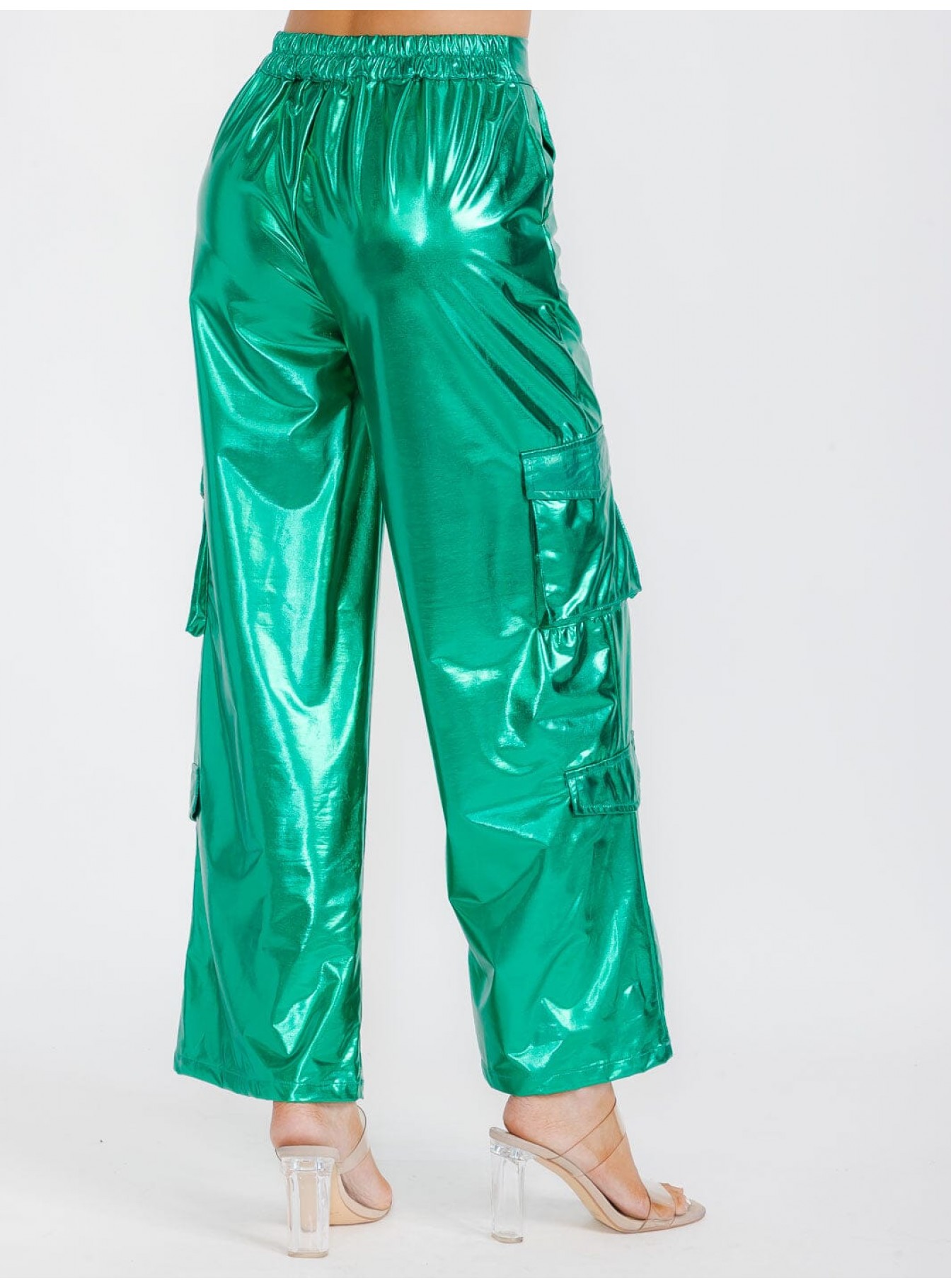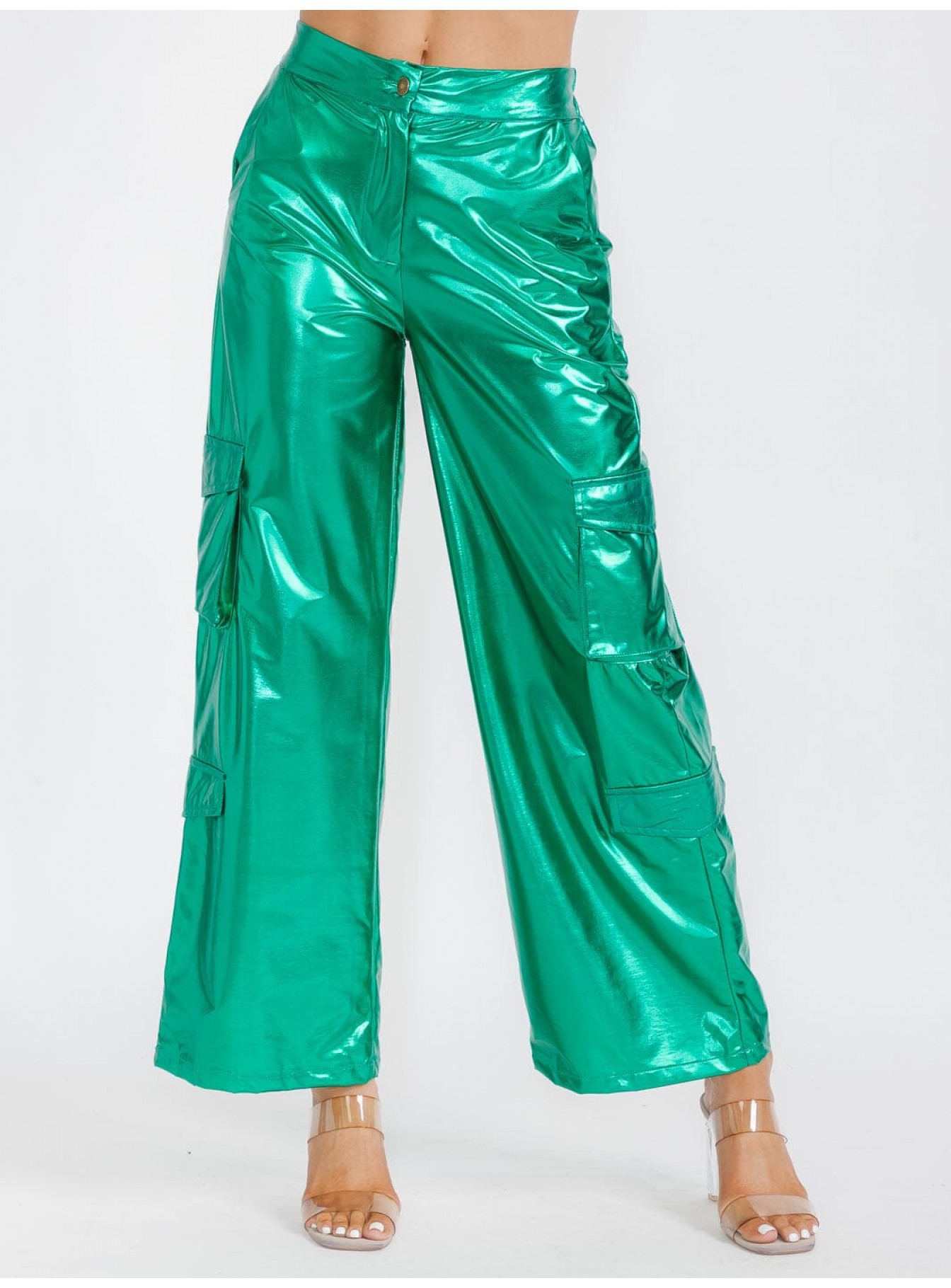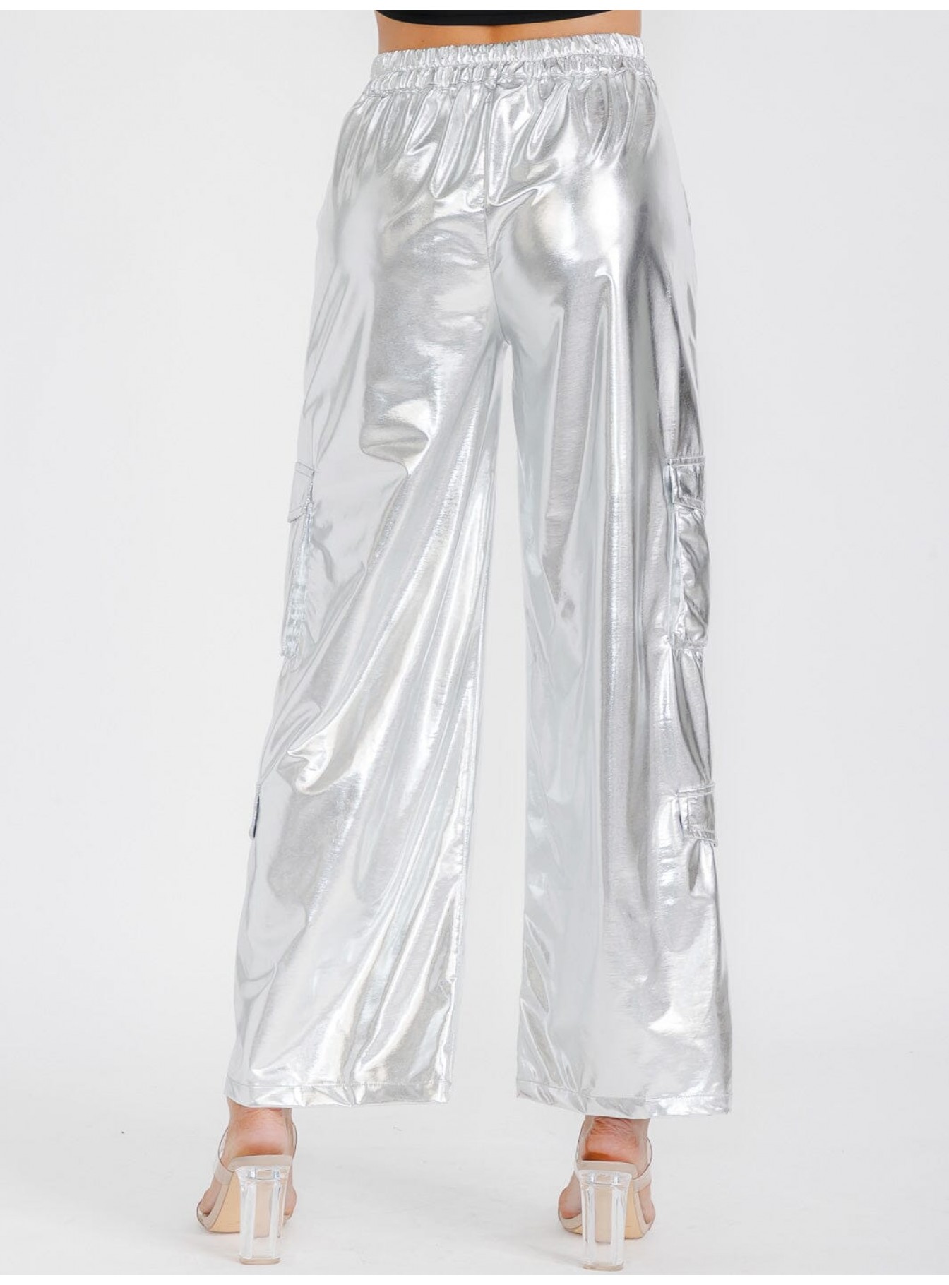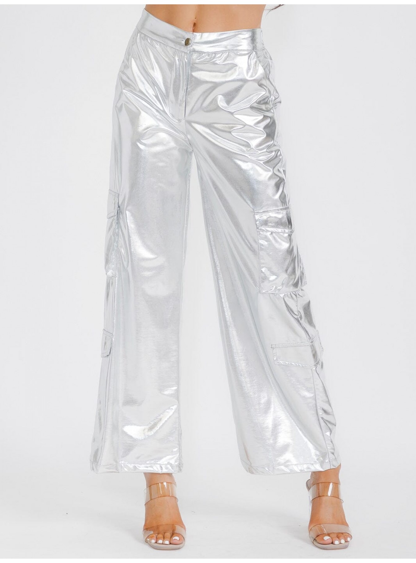 - Product Code: WOMEN'S BUTTON CLOSURE CARGO POCKETS METALLIC WIDE LEG PANTS