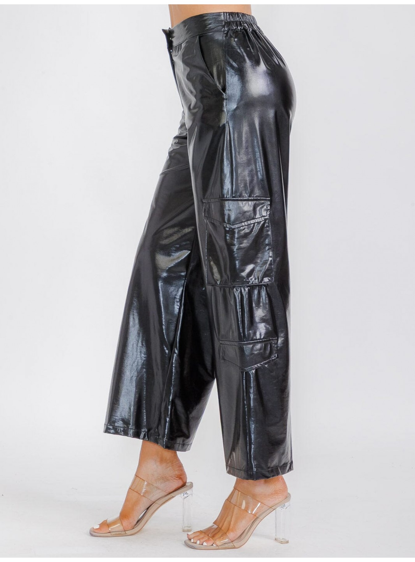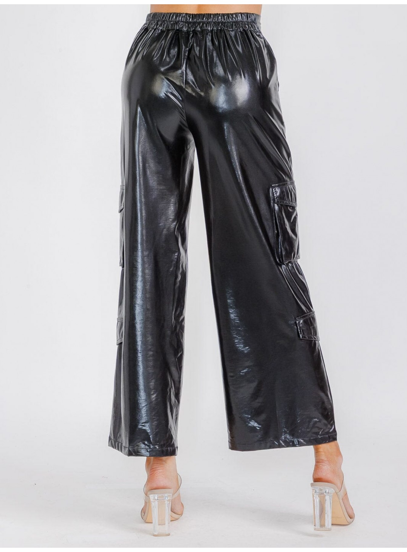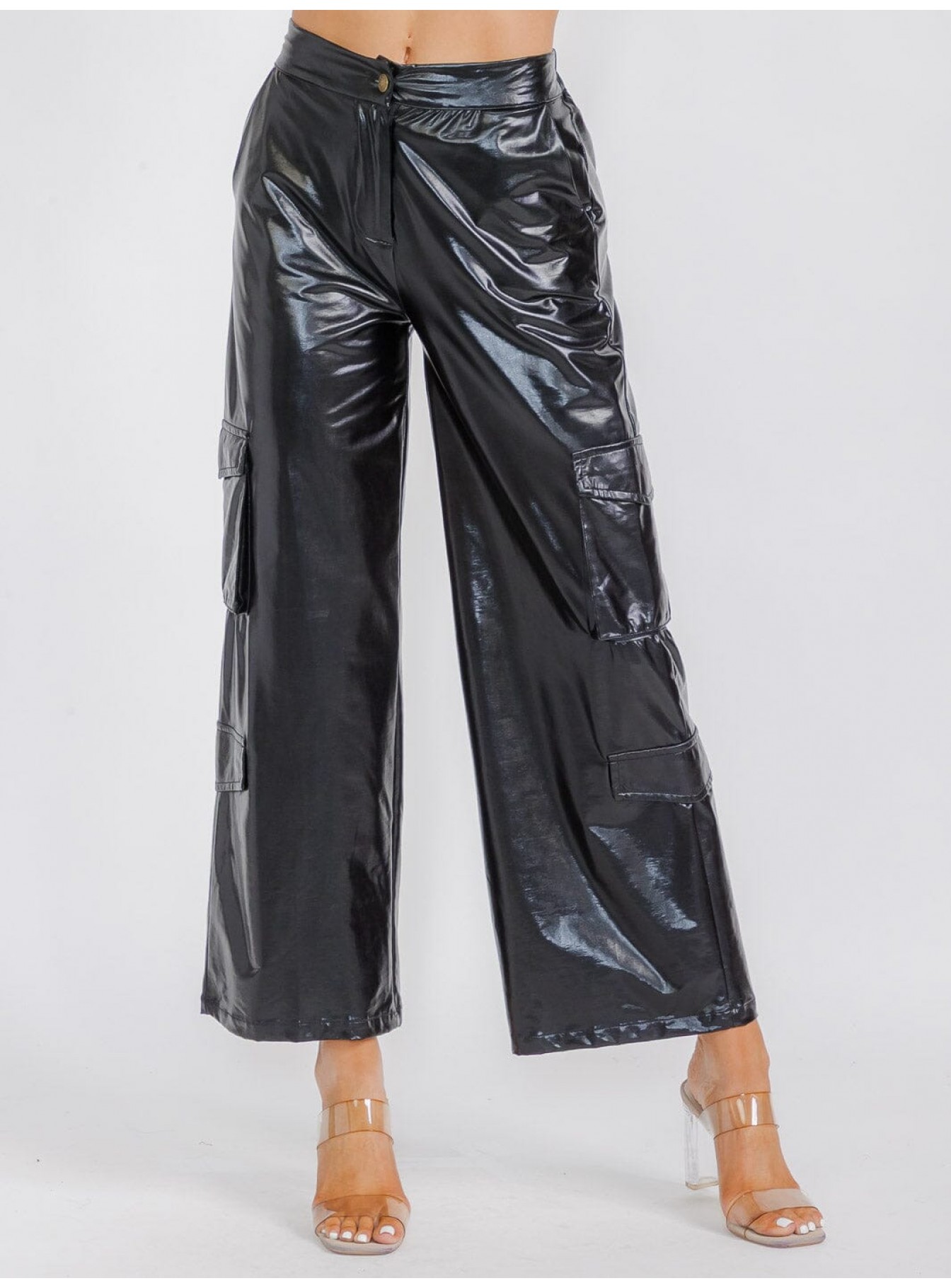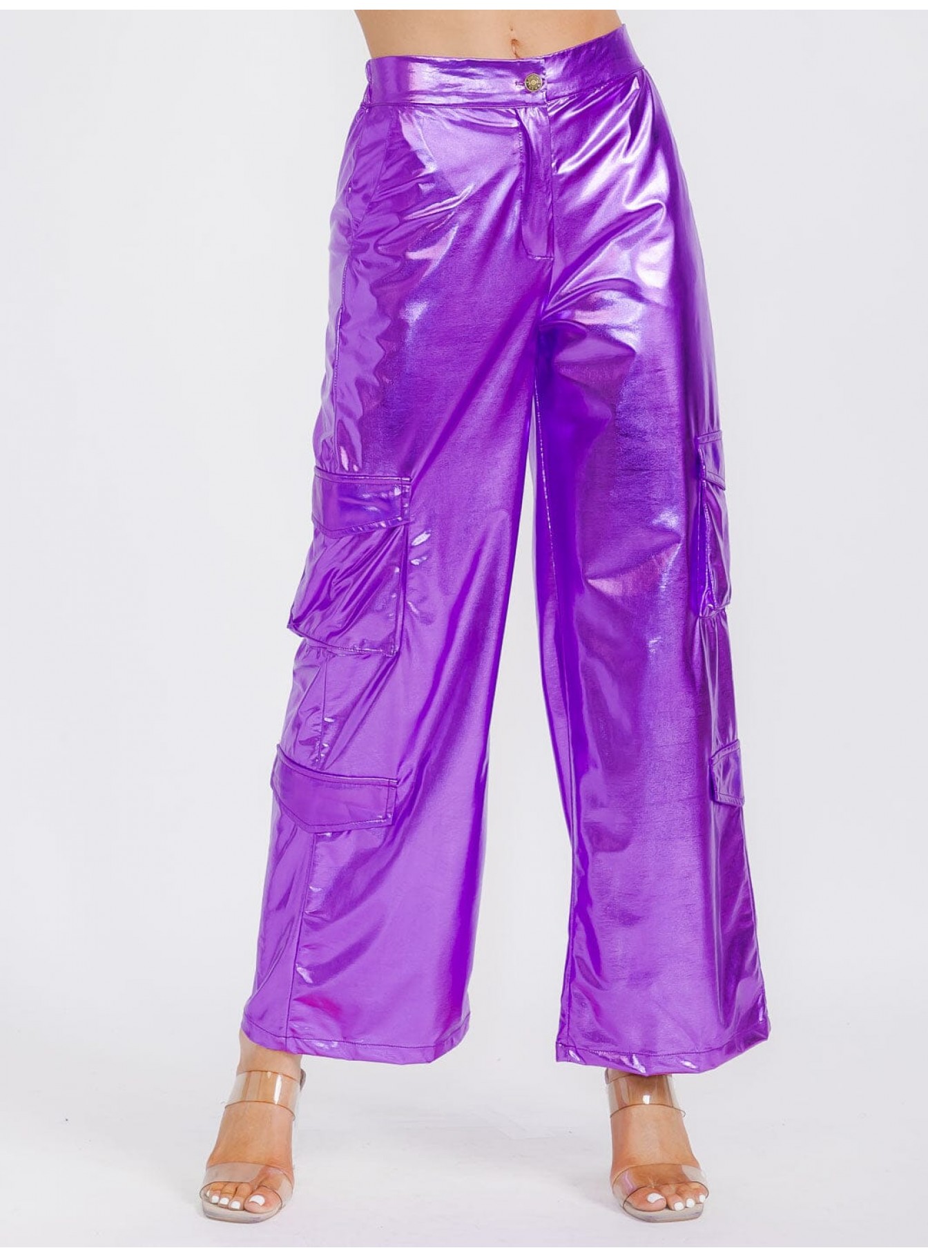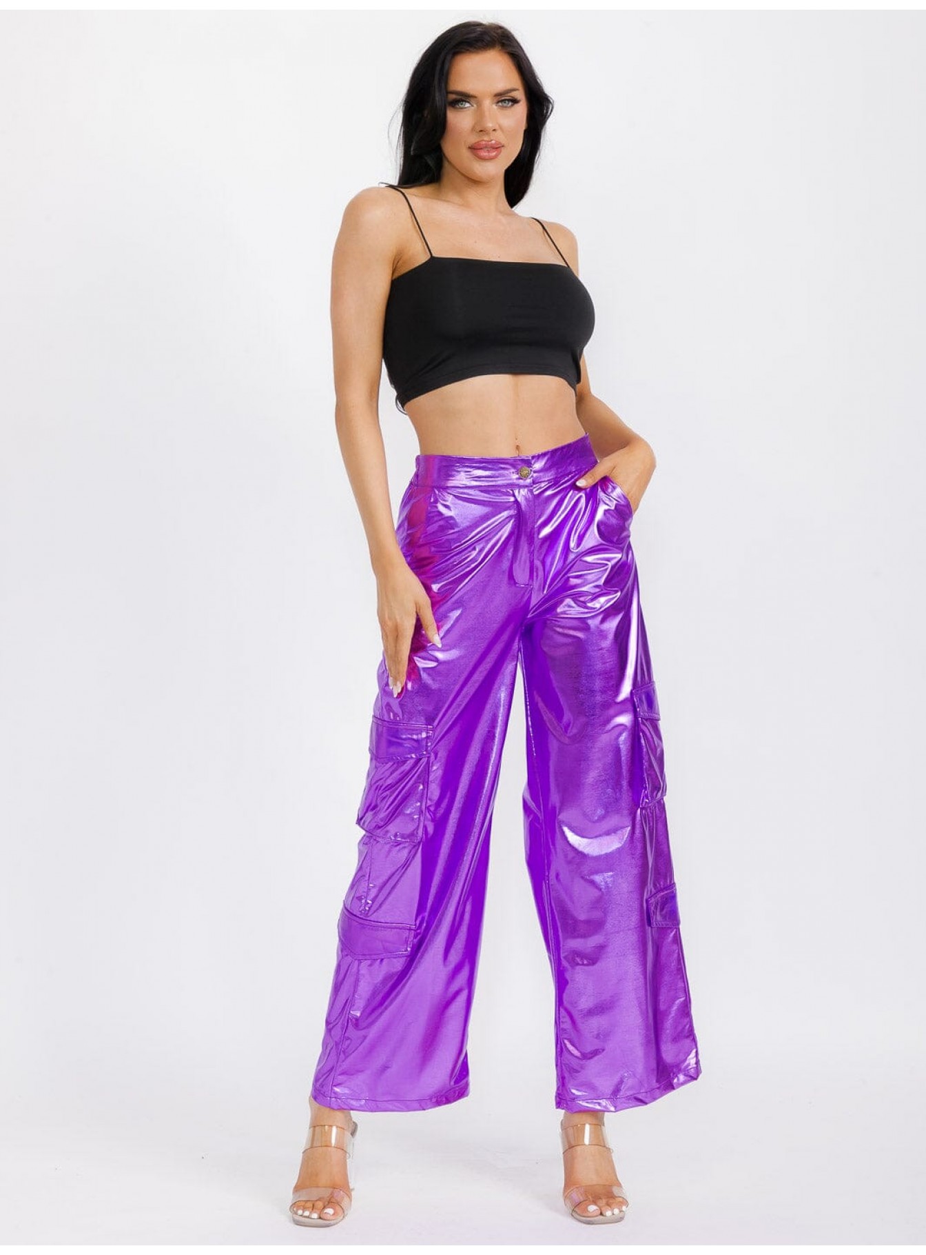 - Product Code: WOMEN'S BUTTON CLOSURE CARGO POCKETS METALLIC WIDE LEG PANTS