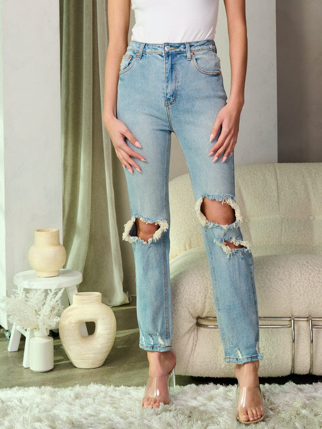 Product Info: 99% Cotton 1% Spandex. Hand Wash. Model is wearing size S Length: 40" Waist: 13" .....