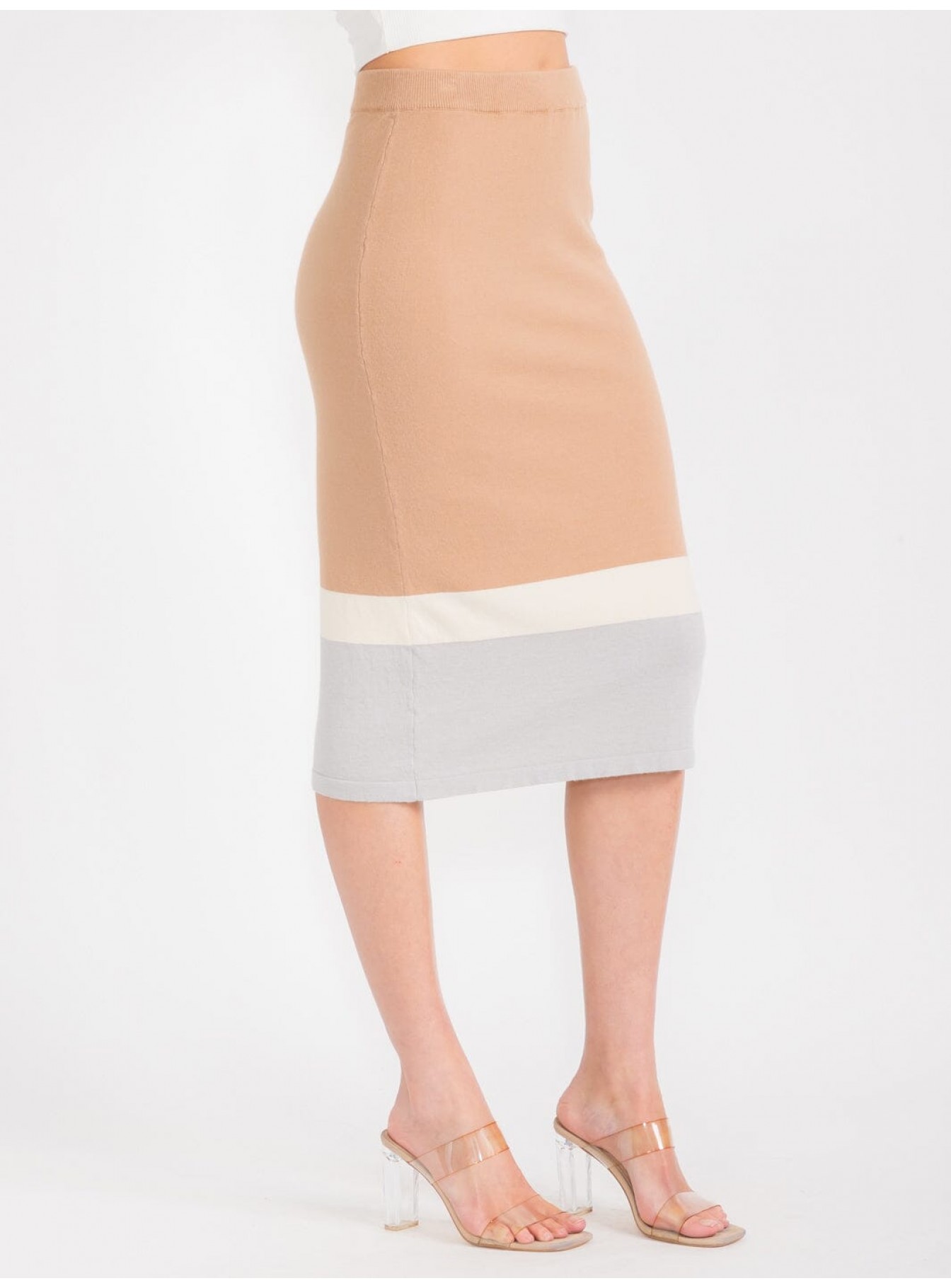- Product Code: WOMEN'S ELASTIC WAIST COLORBLOCK PENCIL MIDI SKIRT