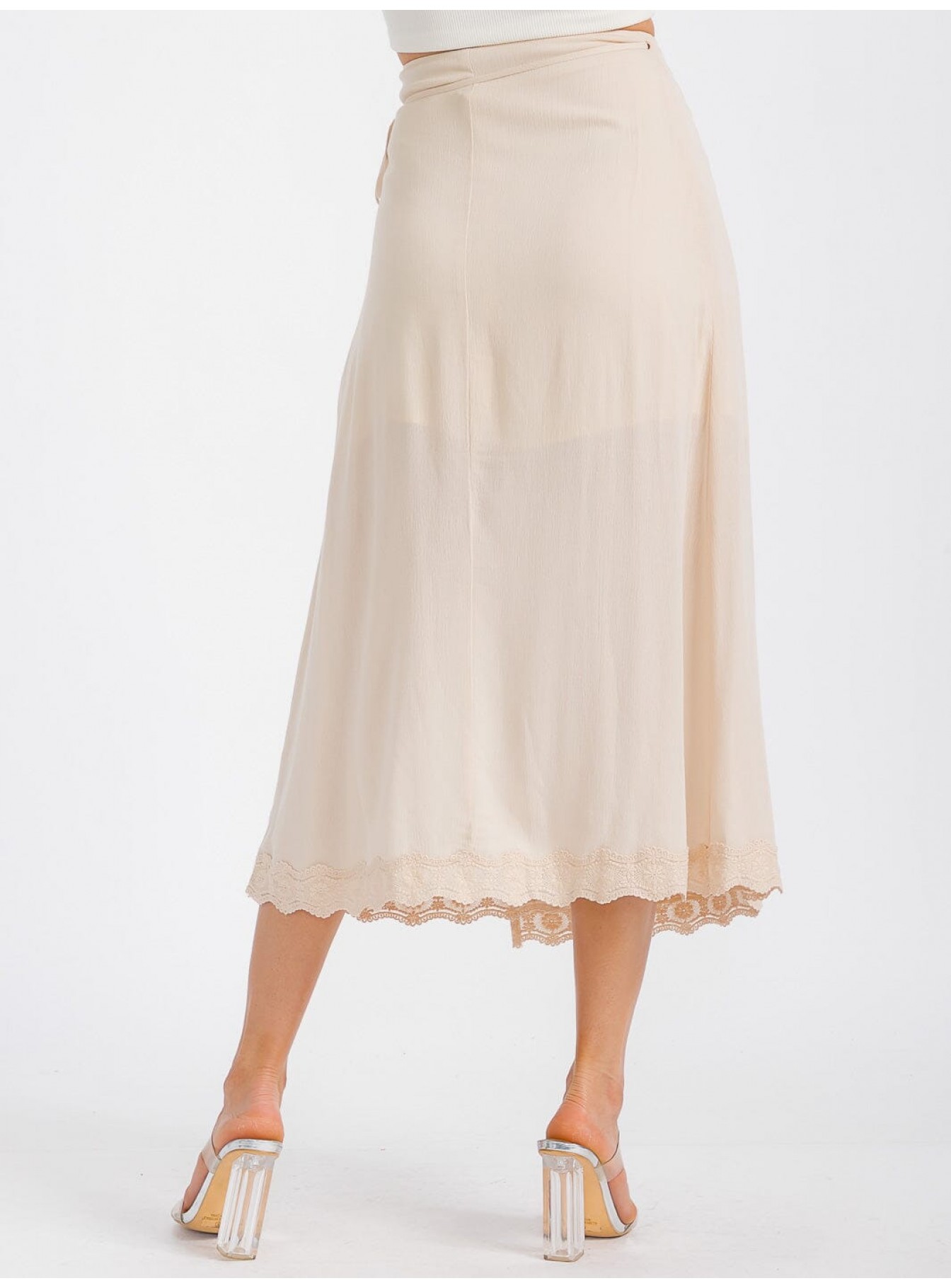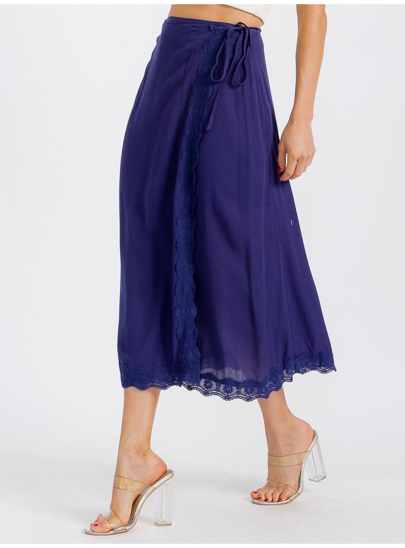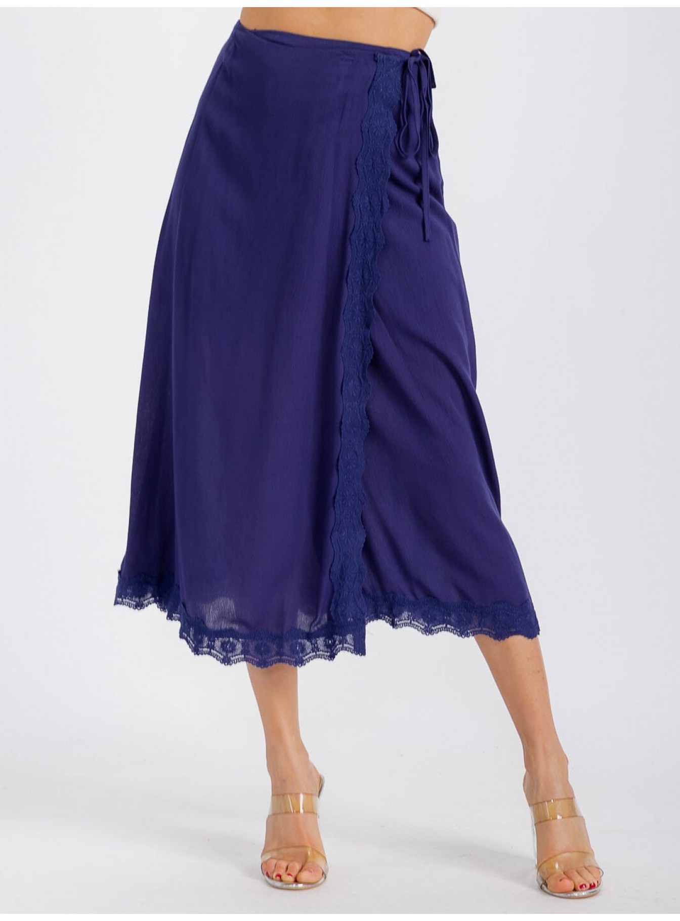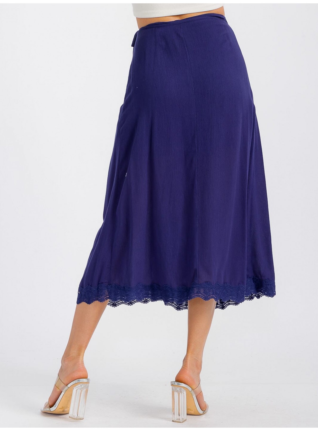 • Product Code: WOMEN'S SELF TIE CROCHET TRIM DETAILED WRAP MIDI SKIRT