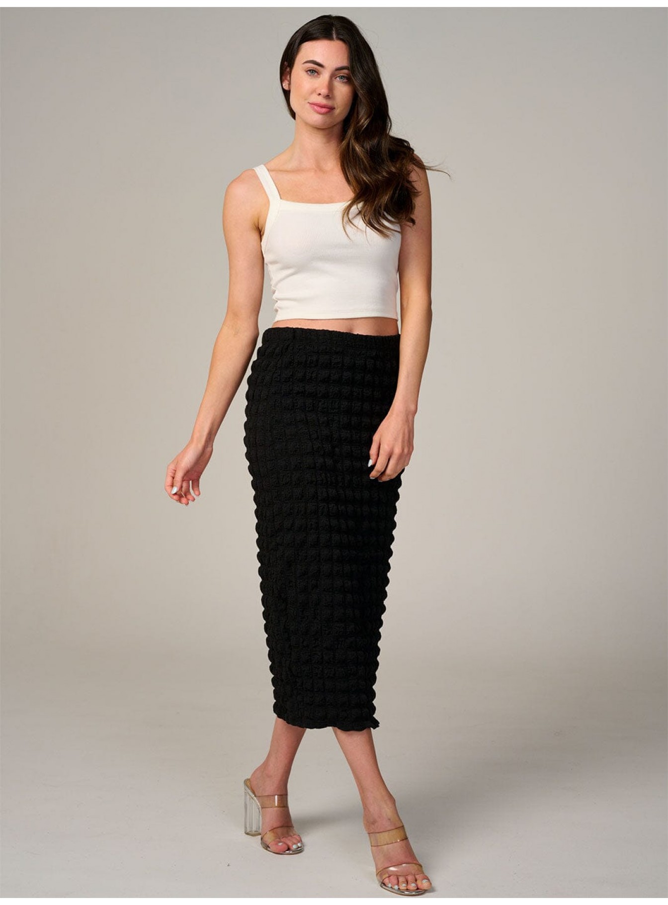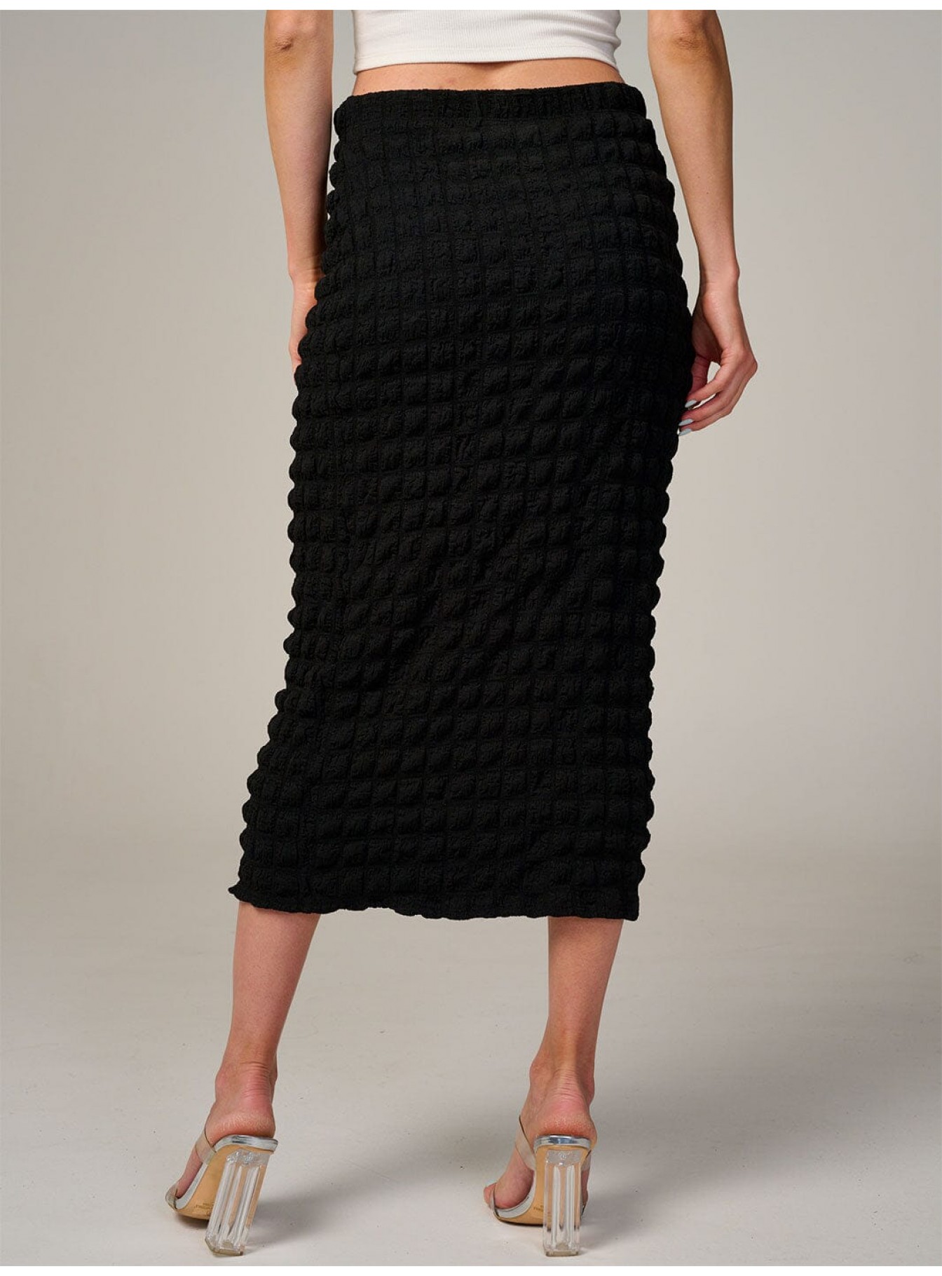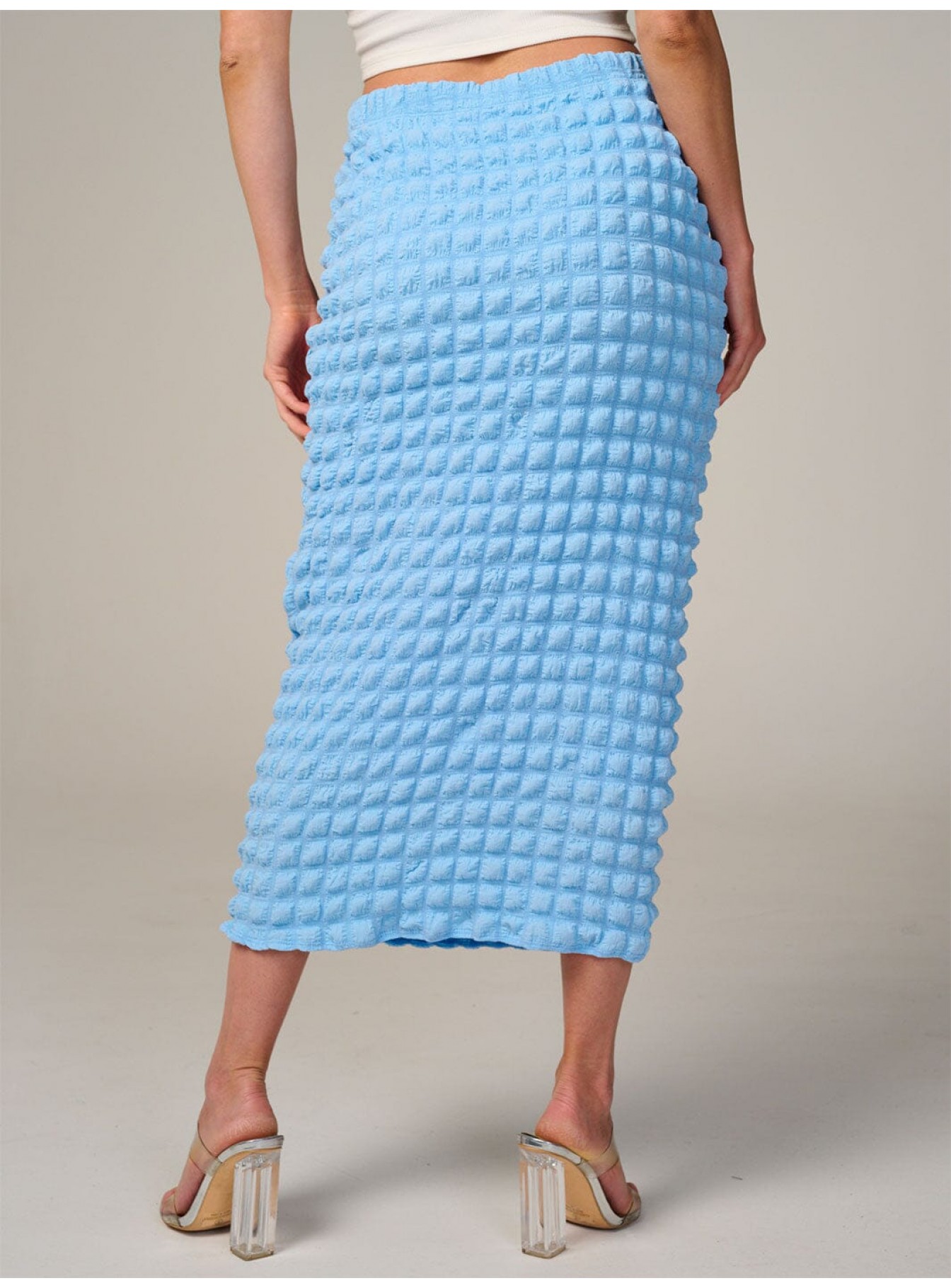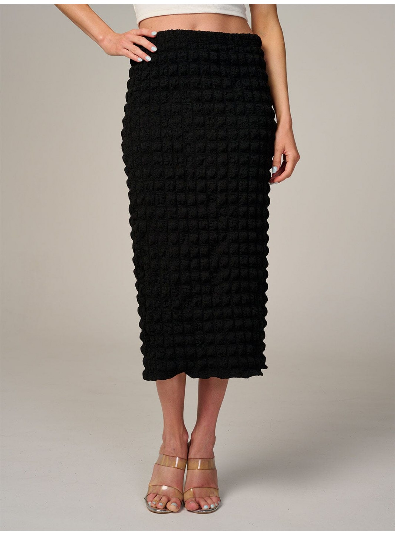 WOMEN'S ELASTIC WAIST WAFFLE MIDI SKIRT