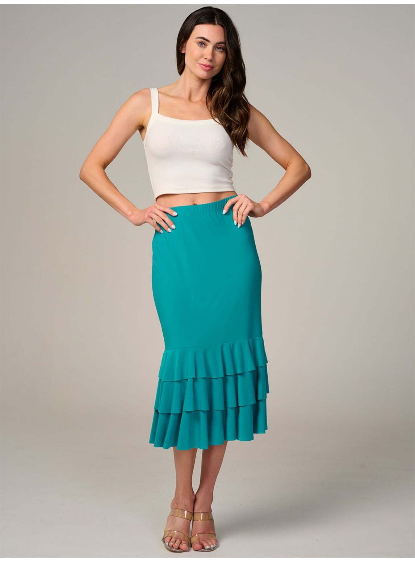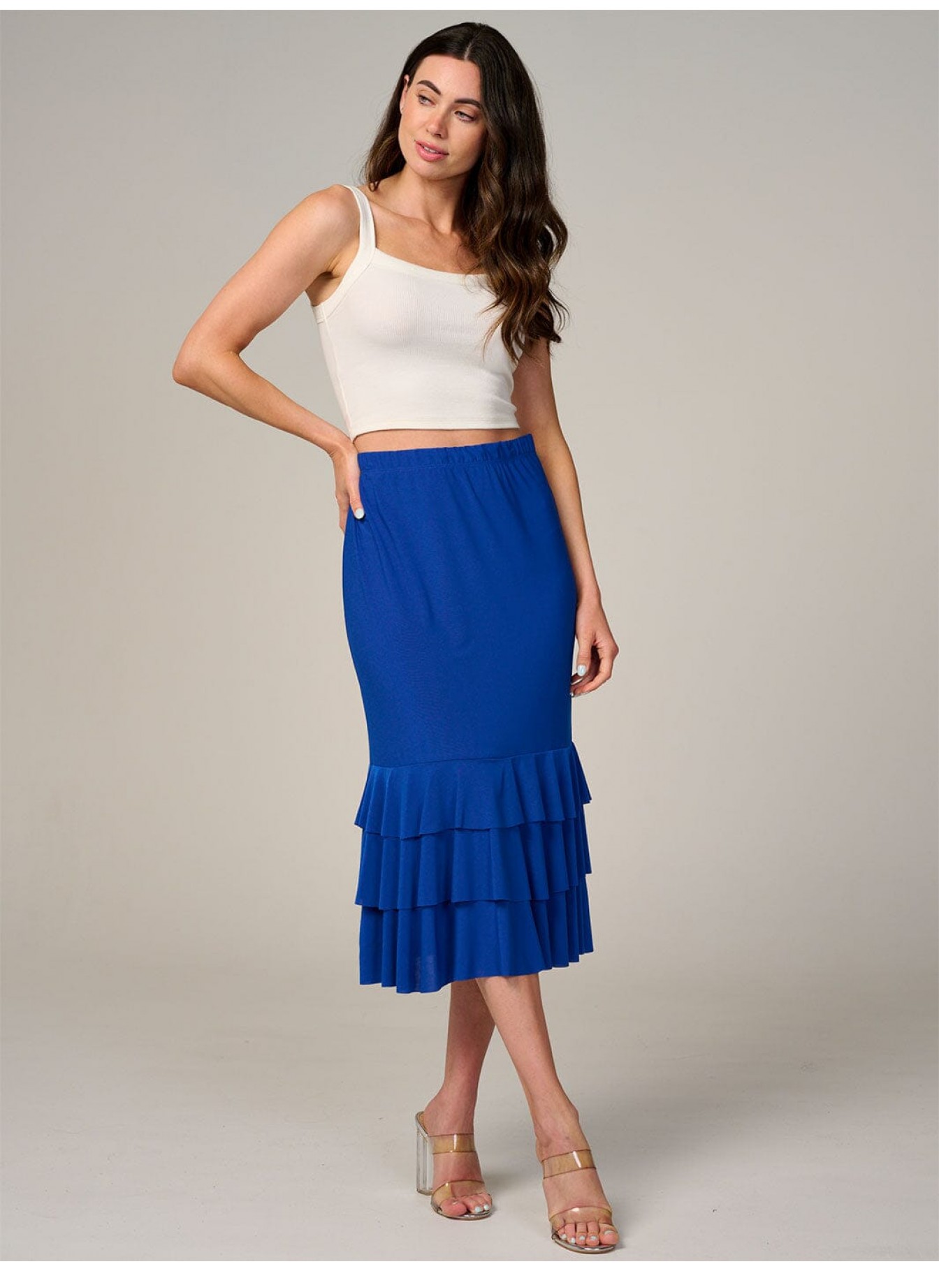 - Product Code: WOMEN'S ELASTIC WAIST TIERED RUFFLE BOTTOM HEM MIDI SKIRT