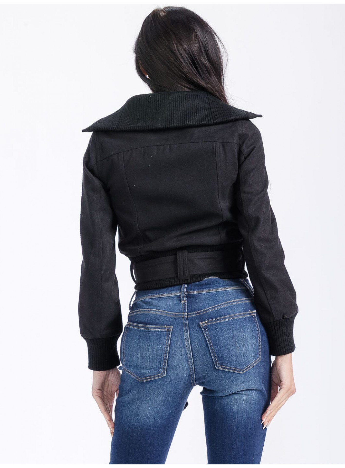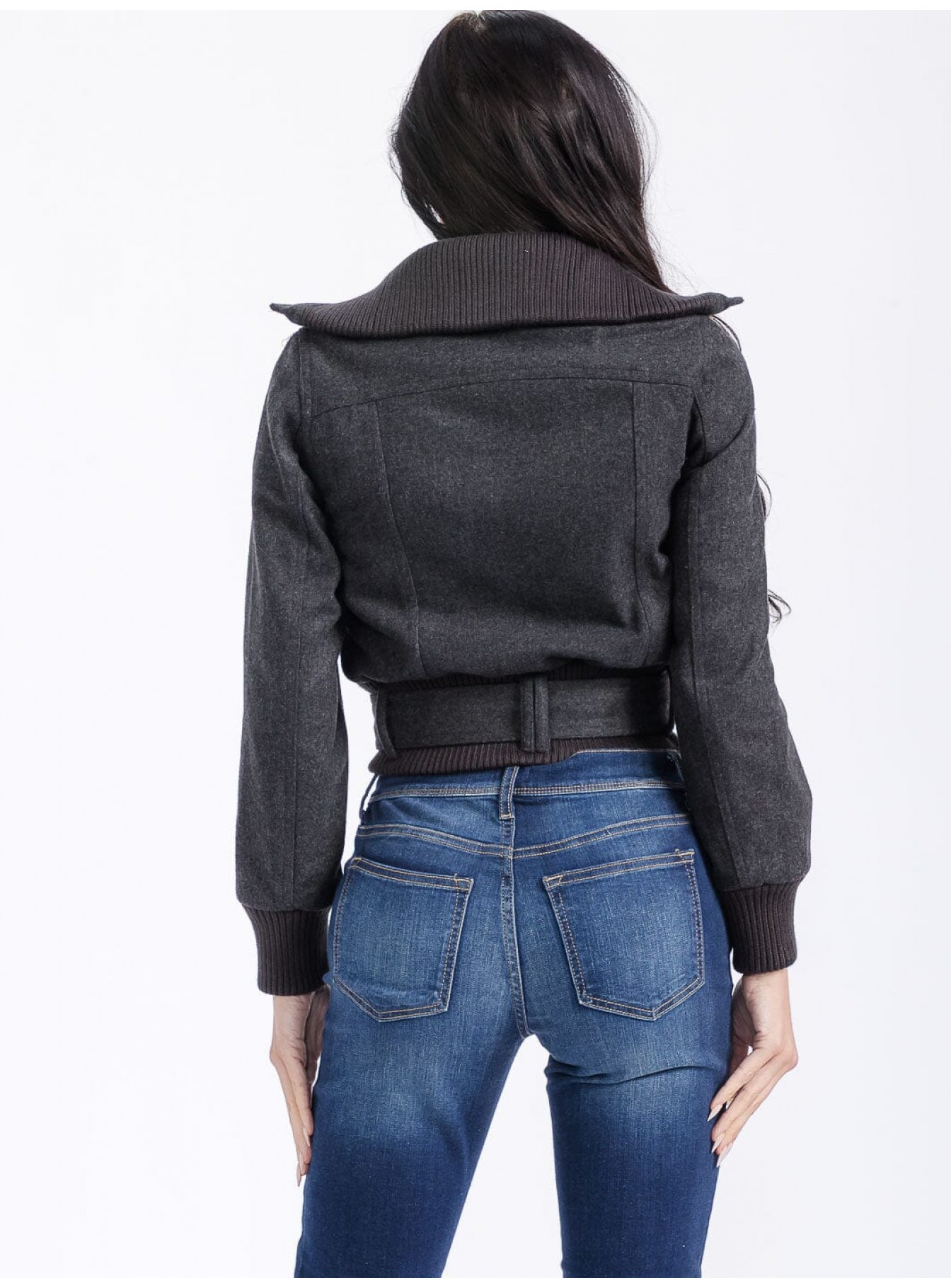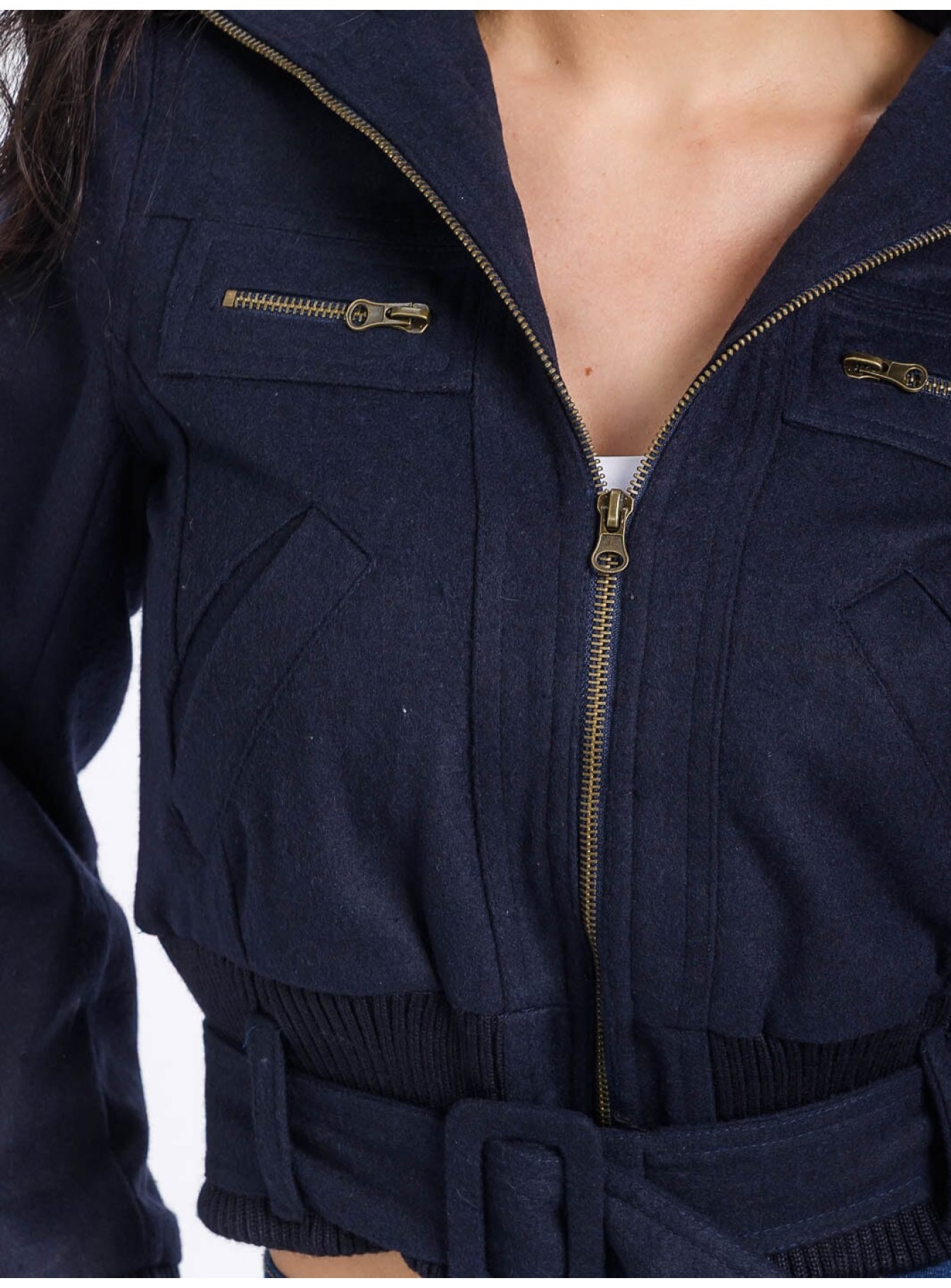 WOMEN'S LONG SLEEVE ZIPPER CLOSURE POCKETS BELTED JACKET