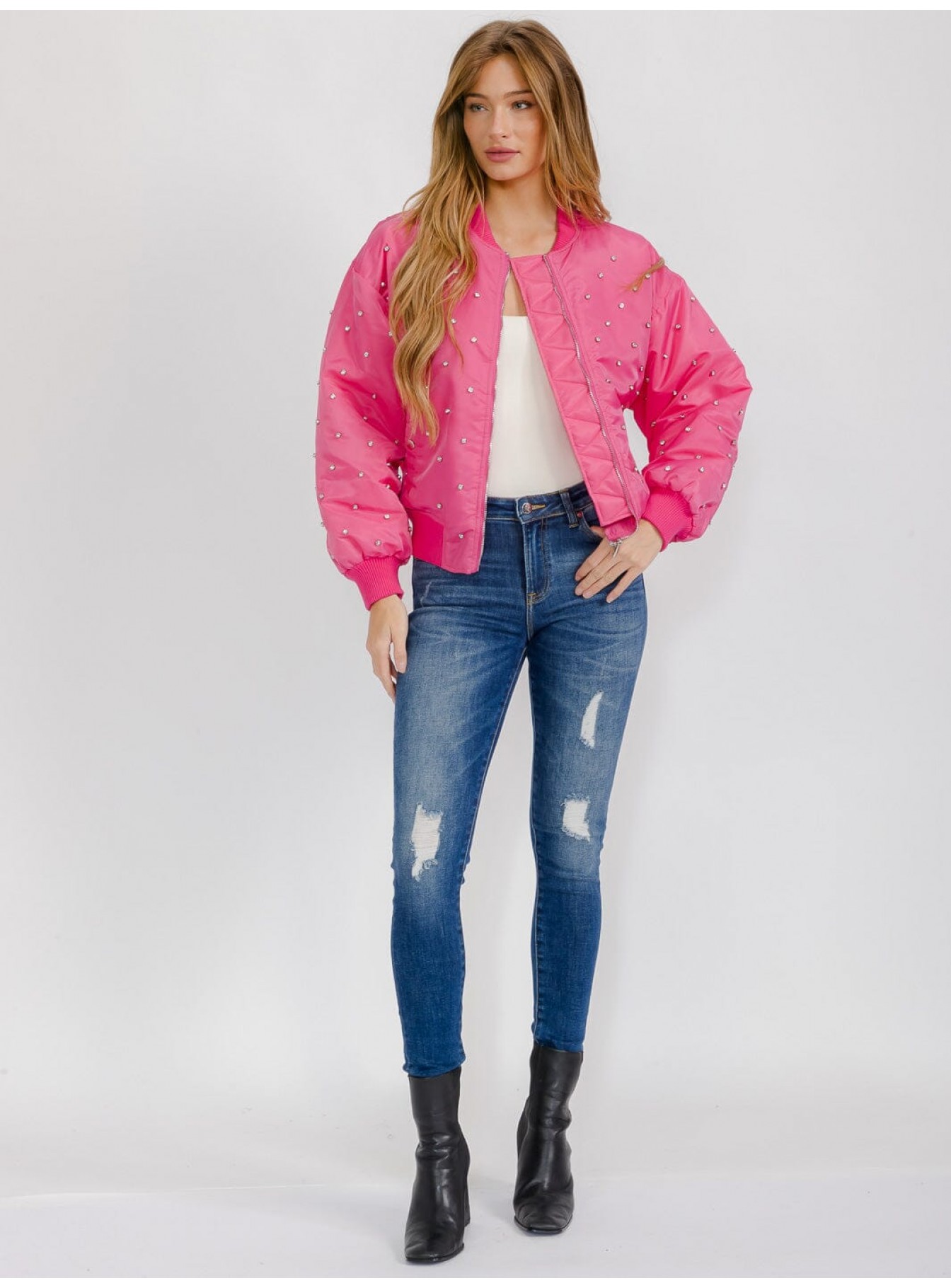 • Product Code: WOMEN'S LONG SLEEVE FRONT POCKETS ZIP UP STUDS DETAILED PUFFER J