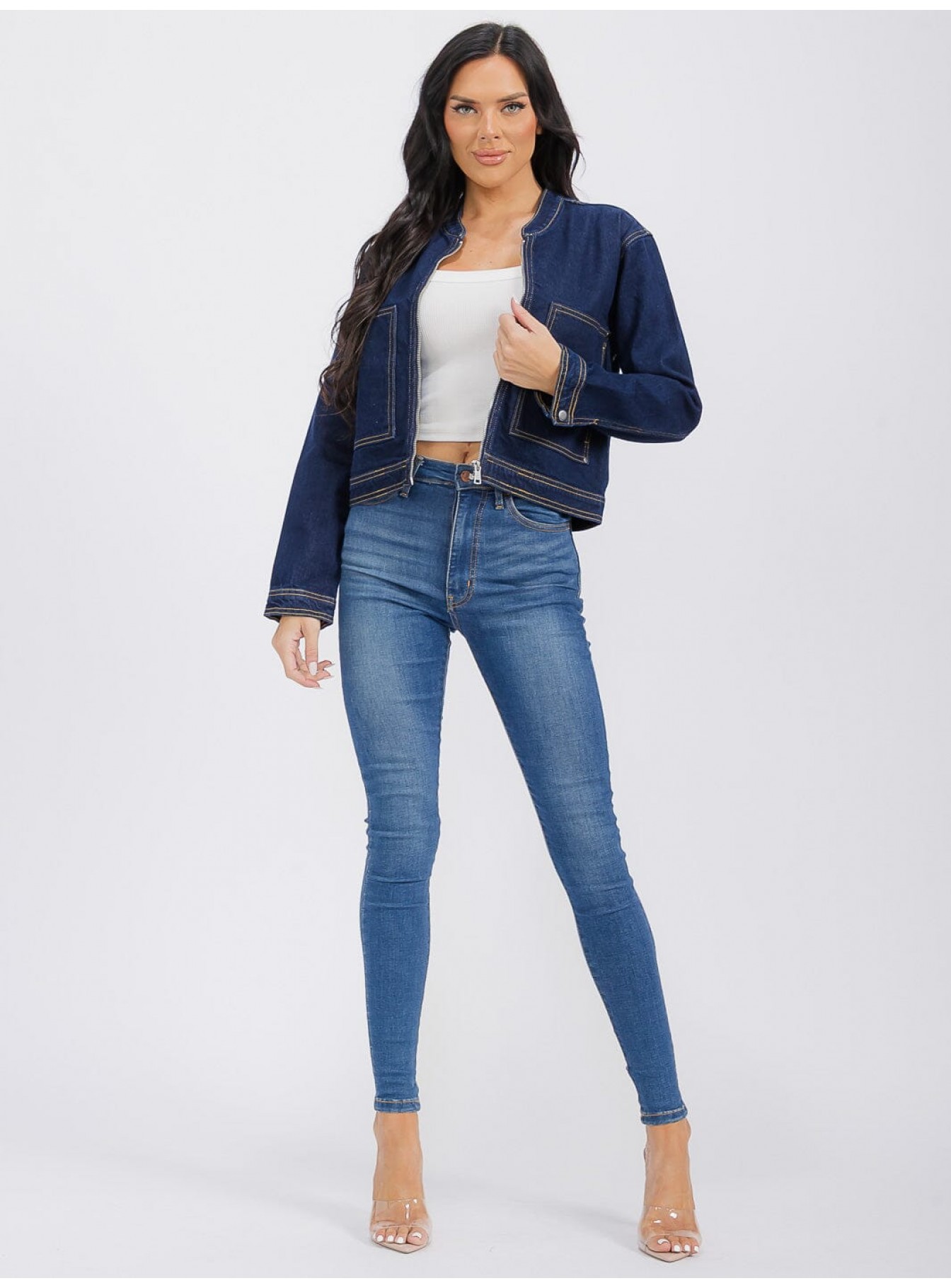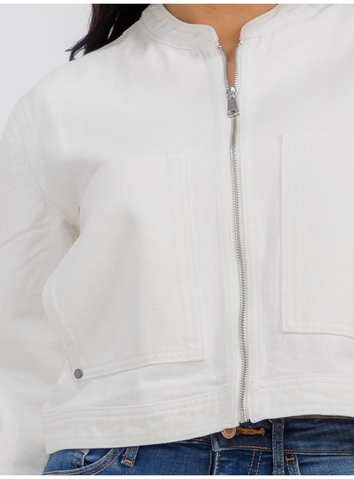 WOMEN'S LONG SLEEVE ZIPPER CLOSURE FRONT POCKETS DENIM JACKET