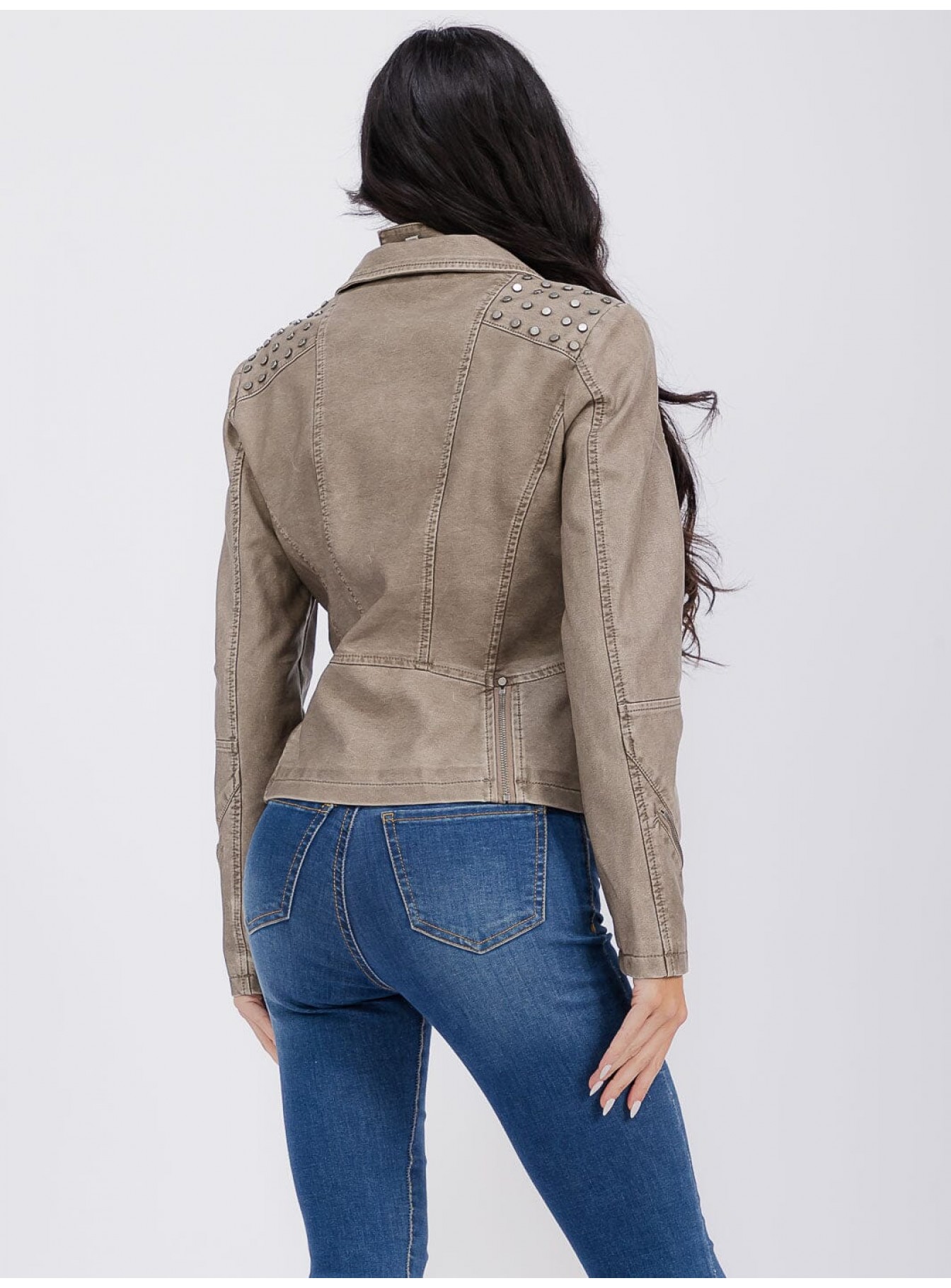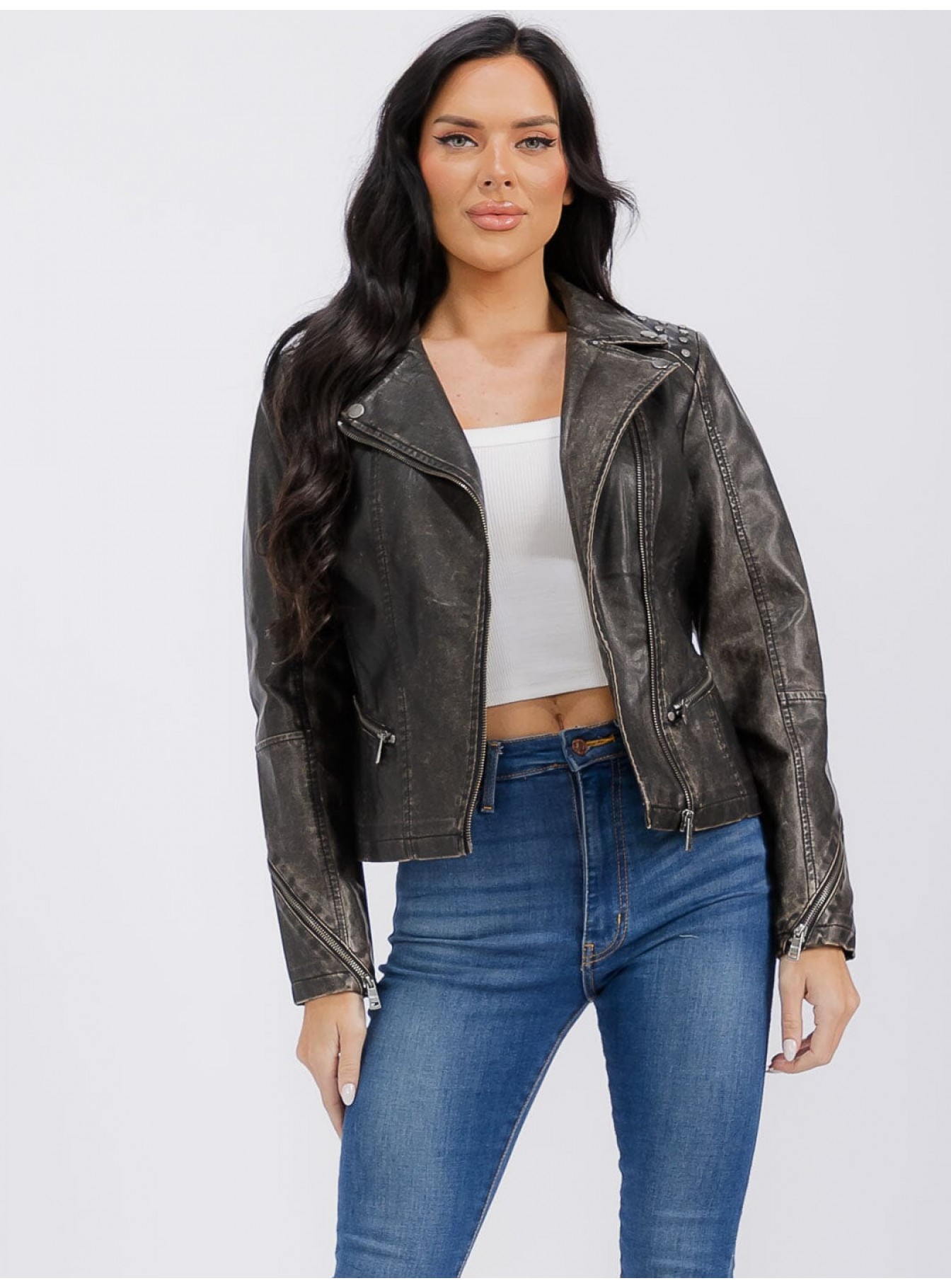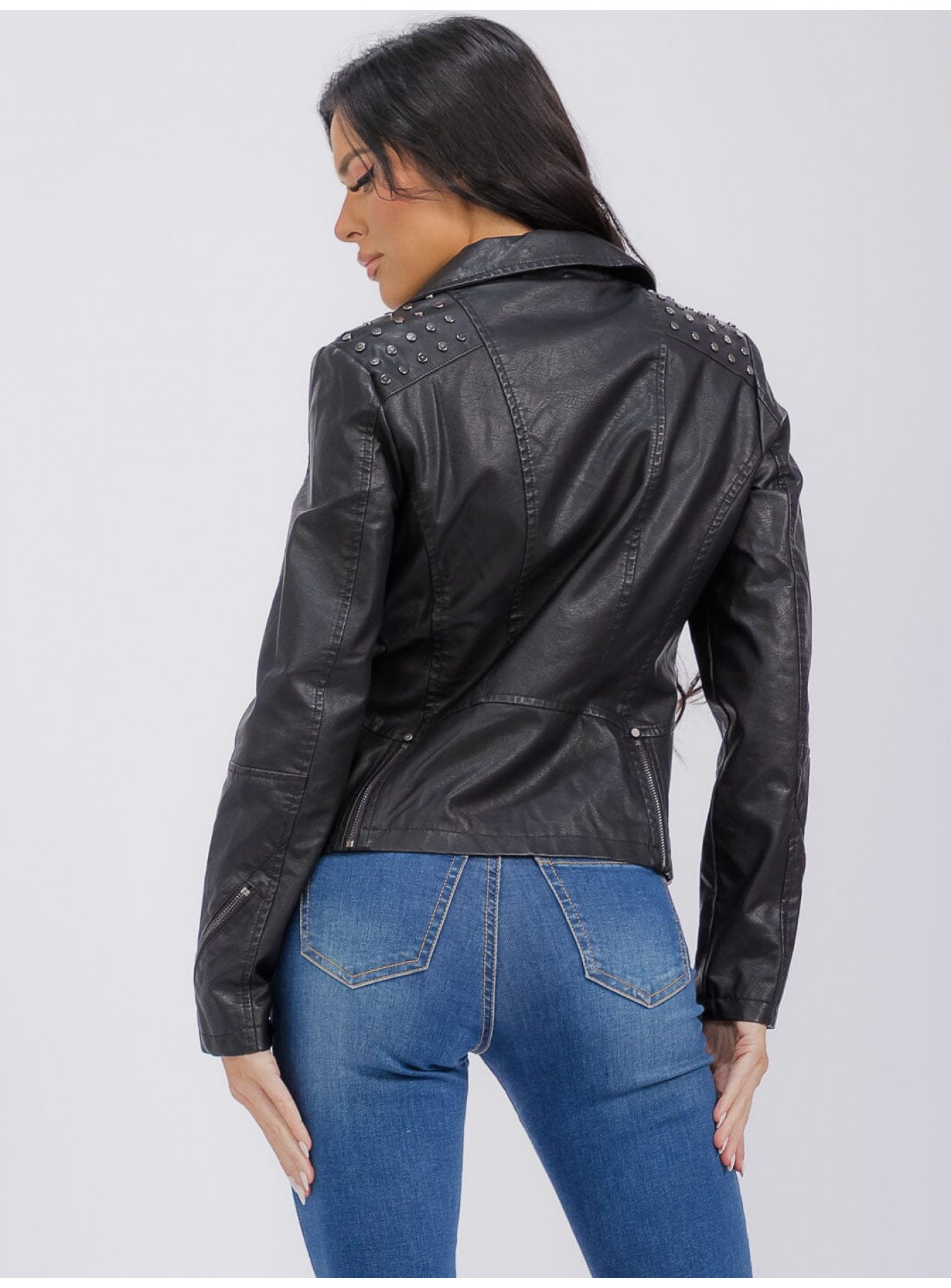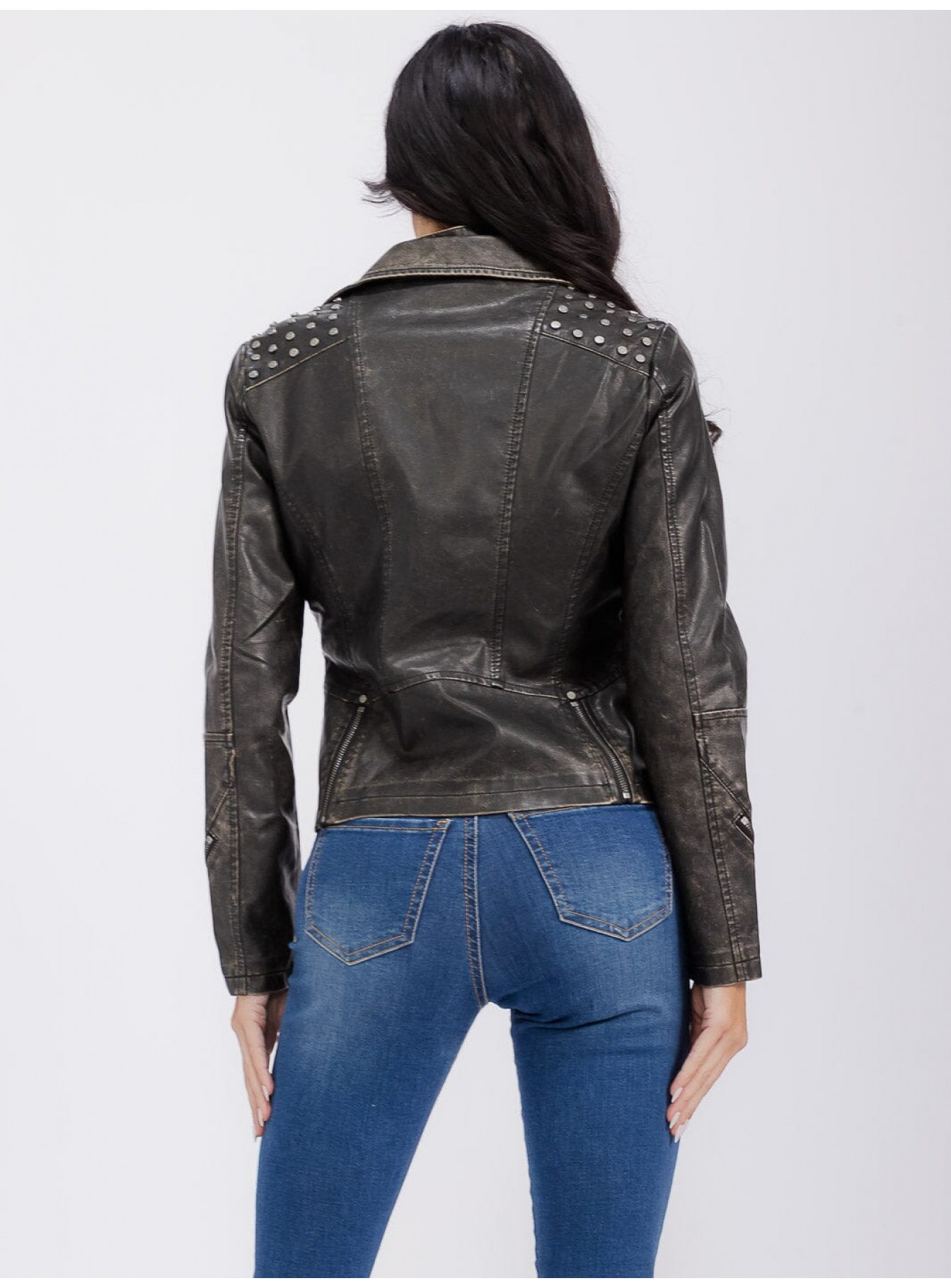 • Product Code: WOMEN'S LONG SLEEVE ZIPPER CLOSURE FRONT POCKETS STUDS PU PLEATH
