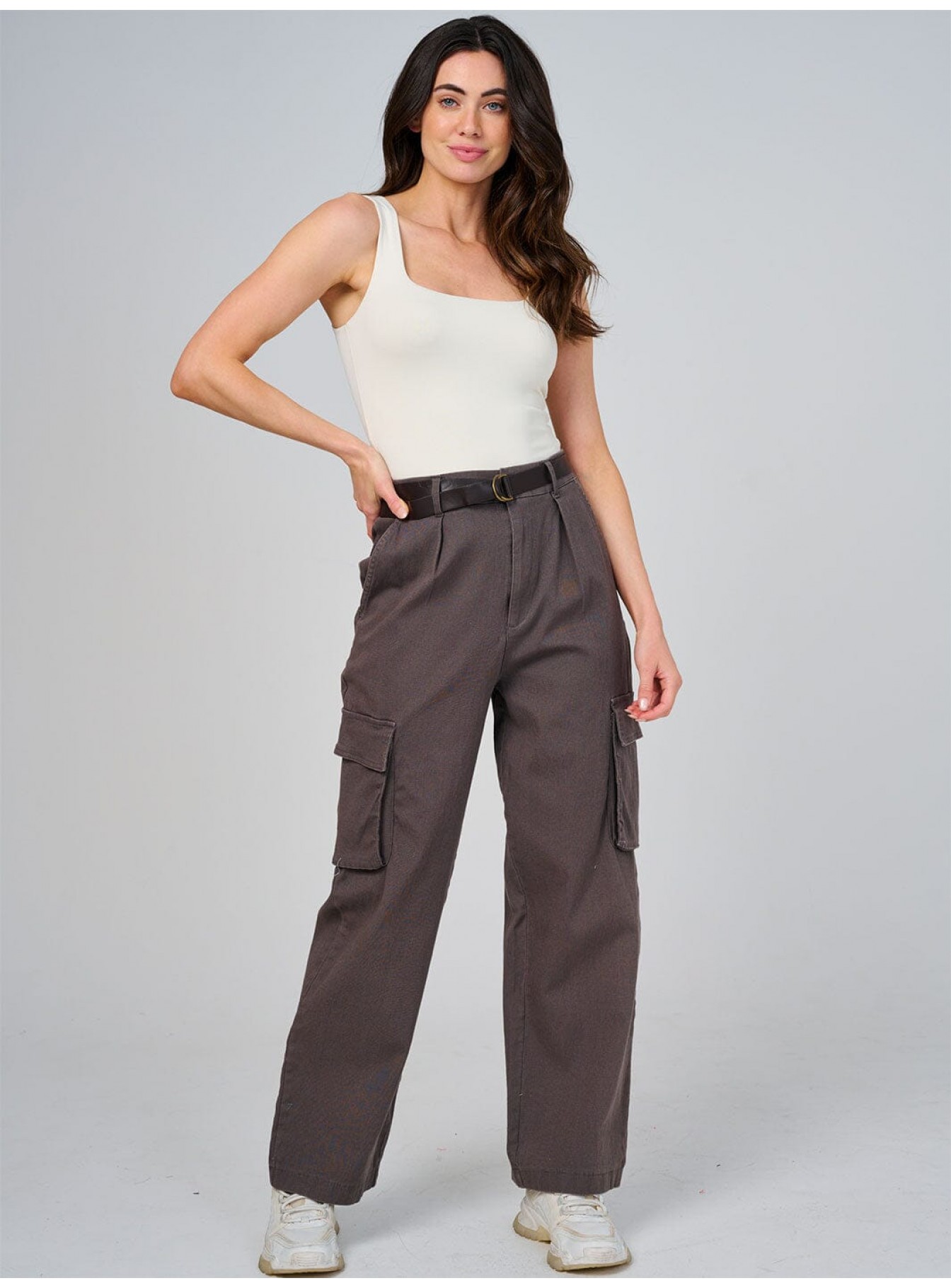 - Product Code: WOMEN'S BUTTON CLOSURE POCKETS BELTED WIDE LEG DENIM PANTS