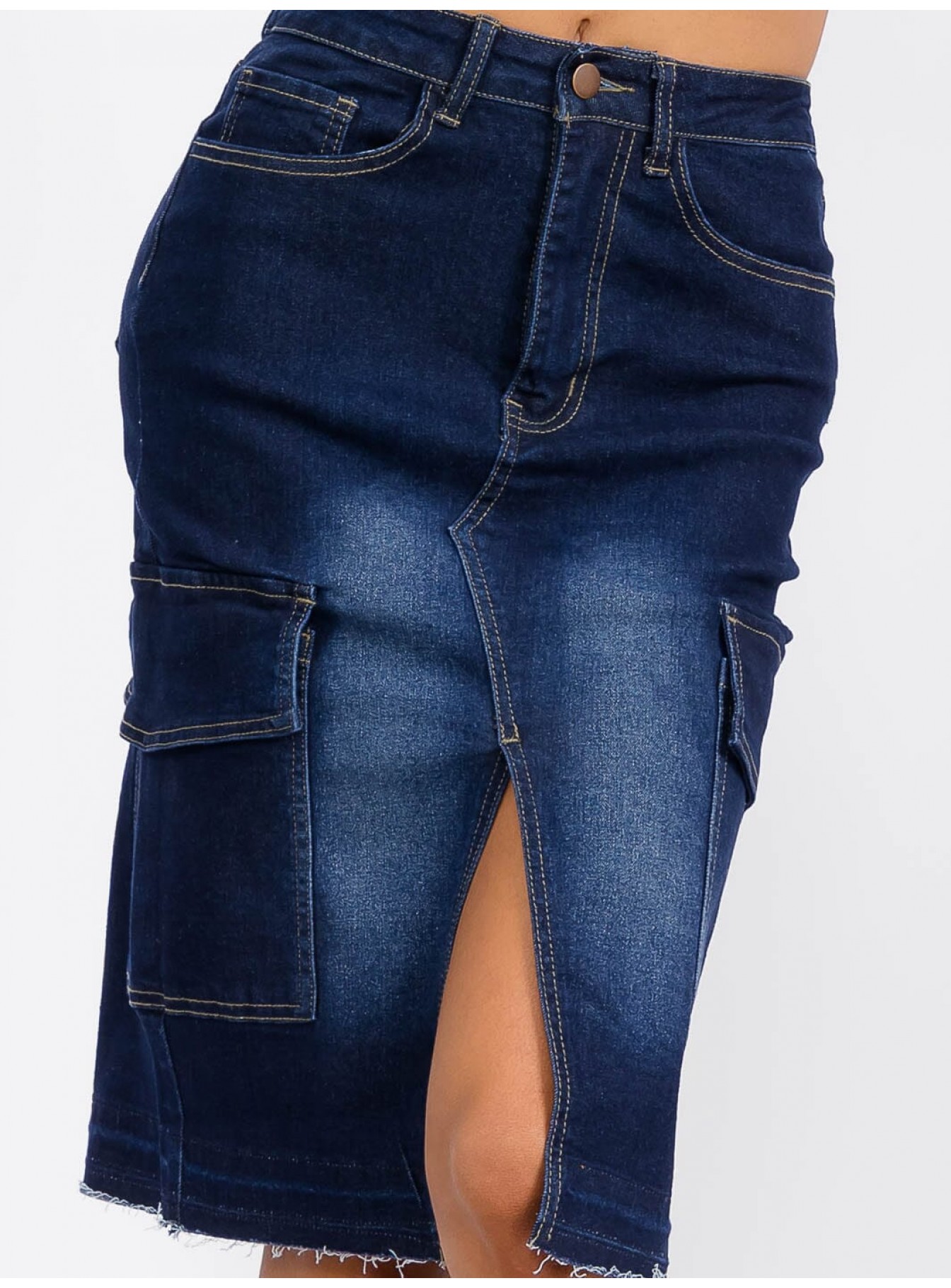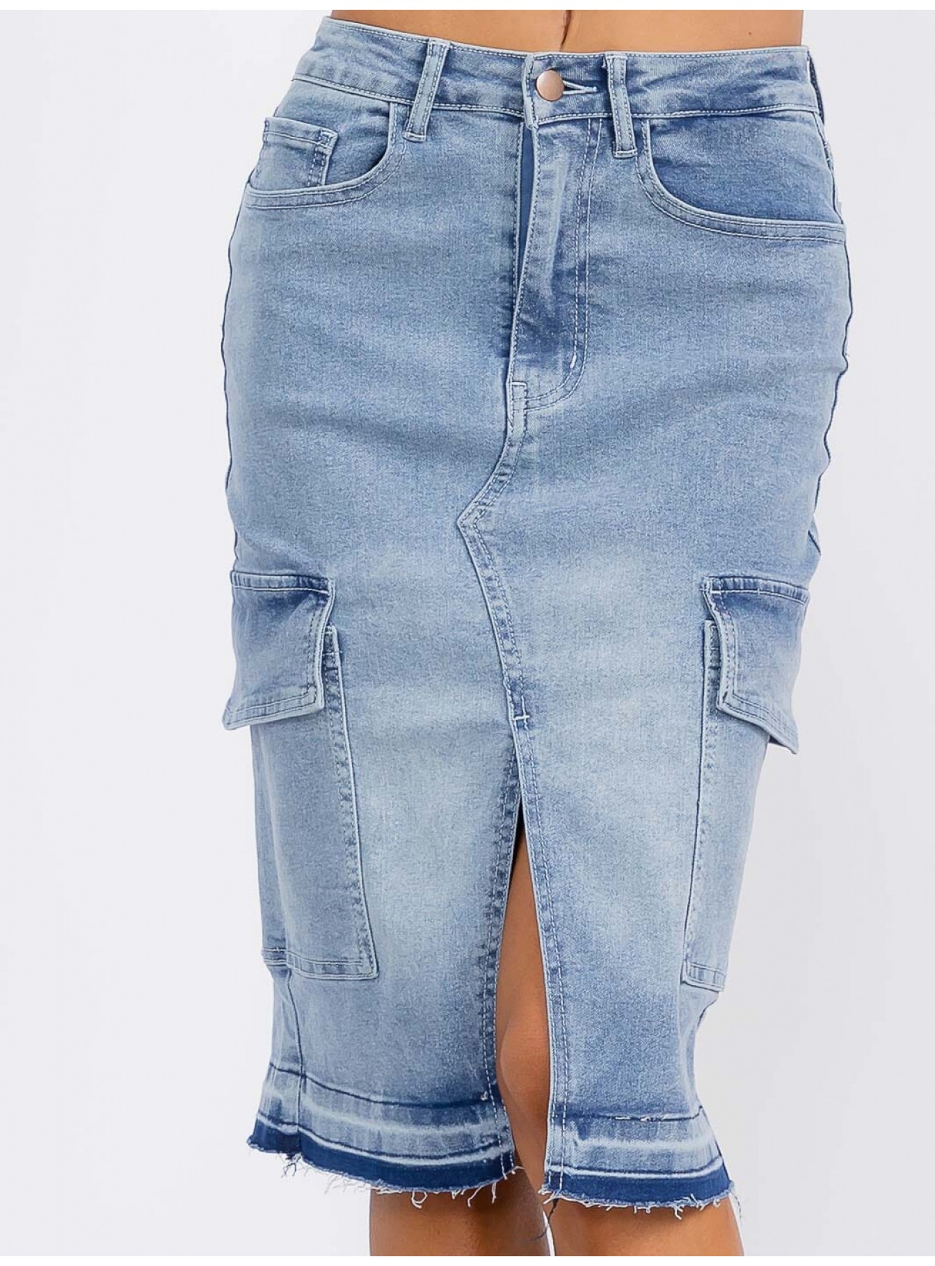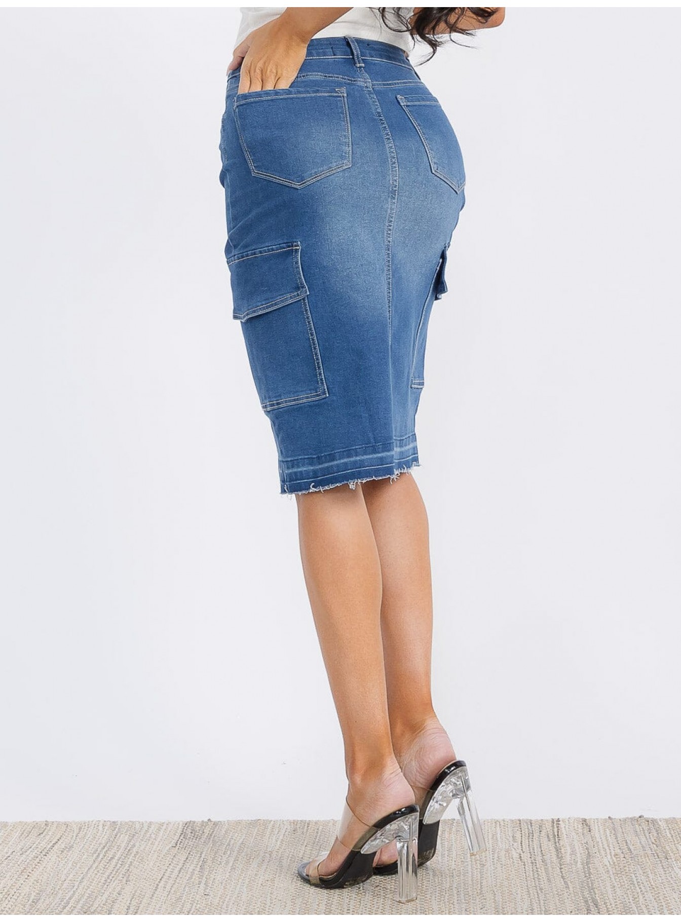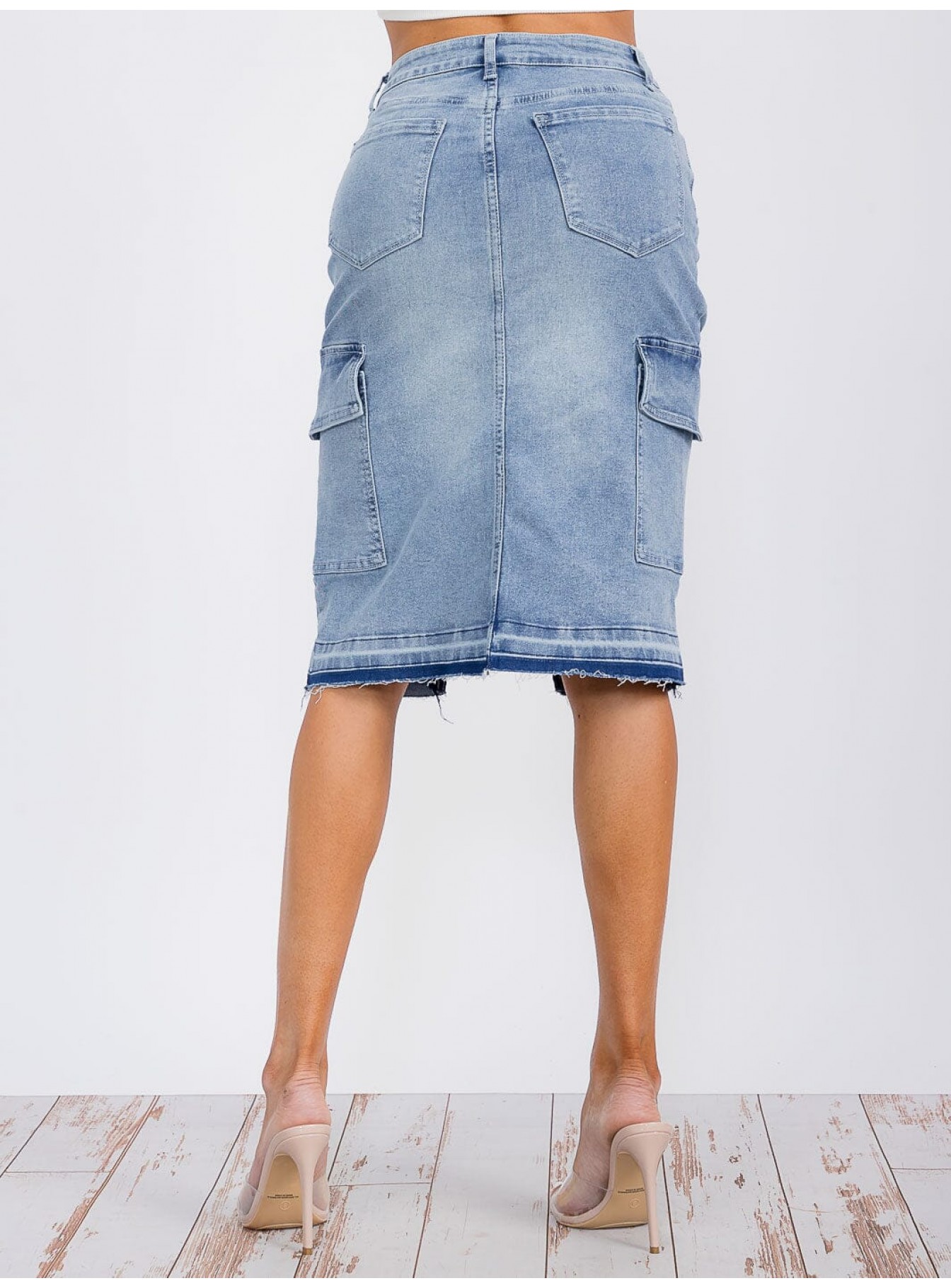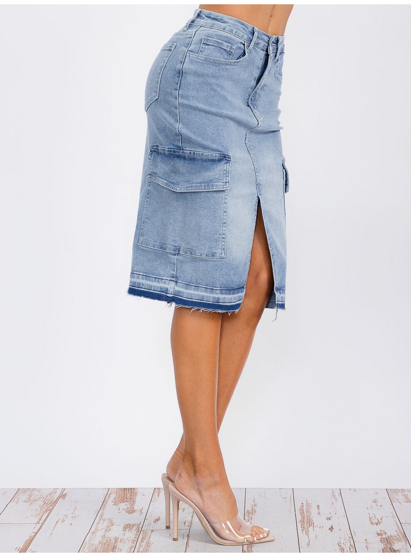 • Product Code: WOMEN'S BUTTON CLOSURE FRONT SLIT CARGO POCKETS WASHED DENIM MID