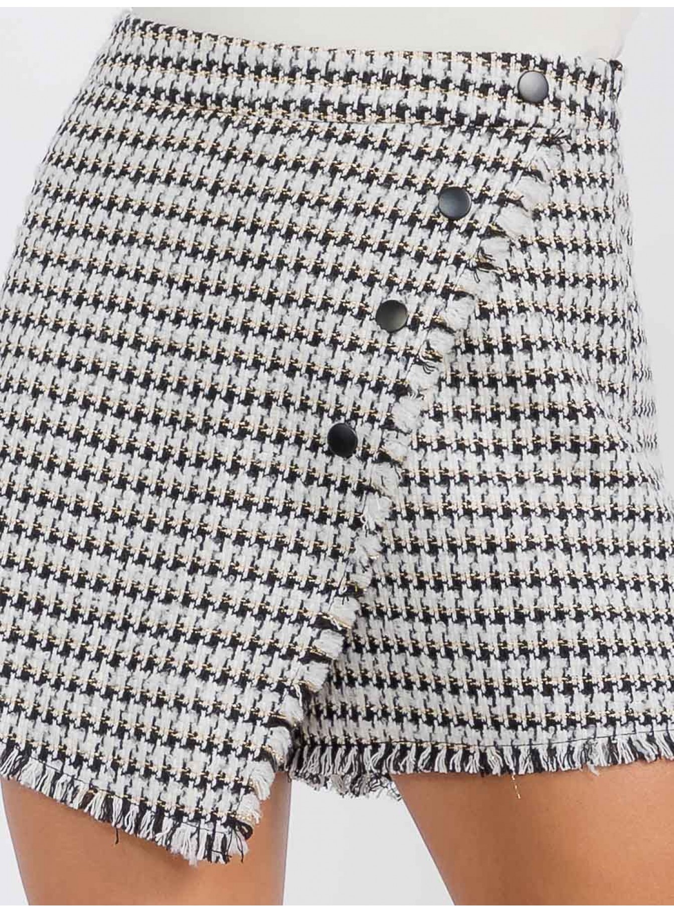 WOMEN'S ZIPPER CLOSURE SURPLICE TWEED MINI SKORT